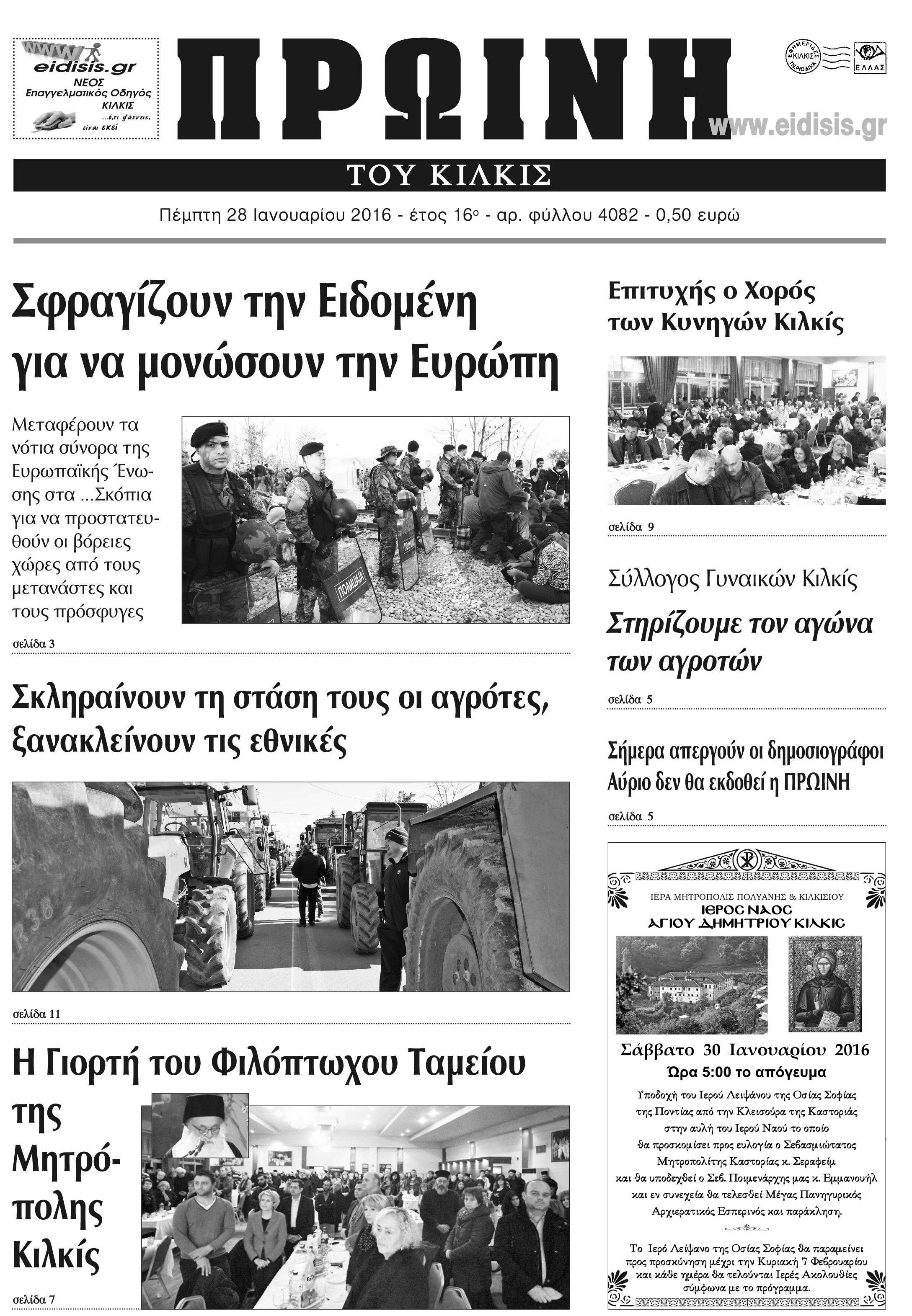 Πέντε χρόνια πριν. Διαβάστε τι έγραφε η καθημερινή εφημερίδα ΠΡΩΙΝΗ του Κιλκίς (28-1-2016)