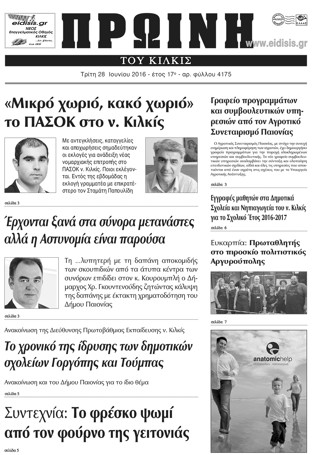 Πέντε χρόνια πριν. Διαβάστε τι έγραφε η καθημερινή εφημερίδα ΠΡΩΙΝΗ του Κιλκίς (28-6-2016)