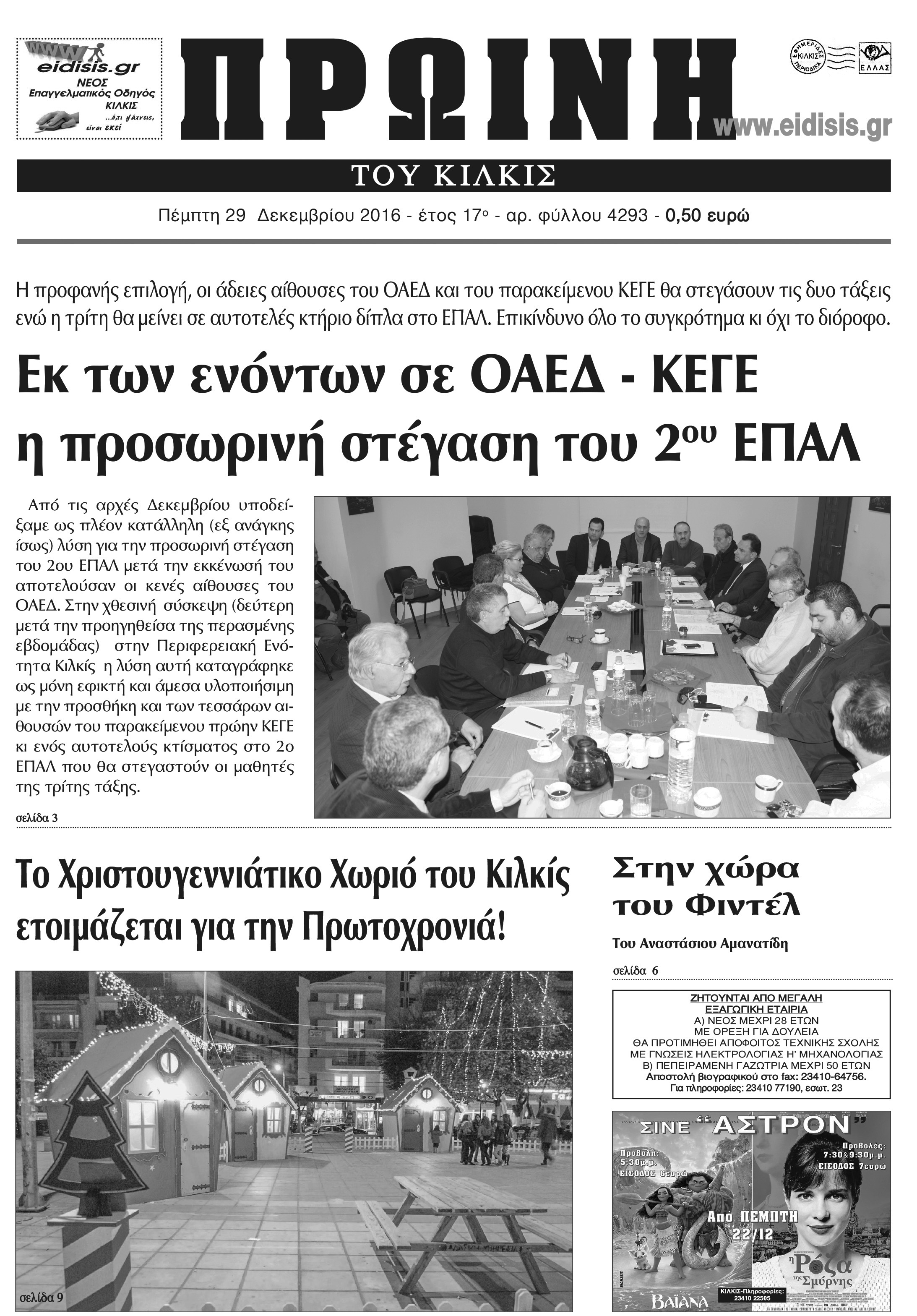 Πέντε χρόνια πριν. Διαβάστε τι έγραφε η καθημερινή εφημερίδα ΠΡΩΙΝΗ του Κιλκίς (29-12-2016)