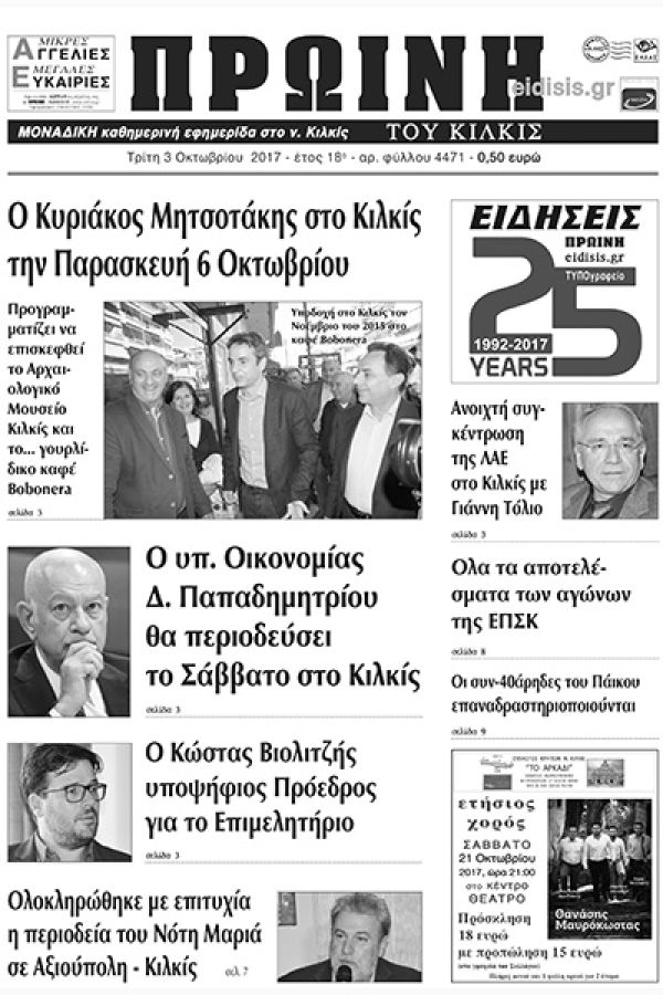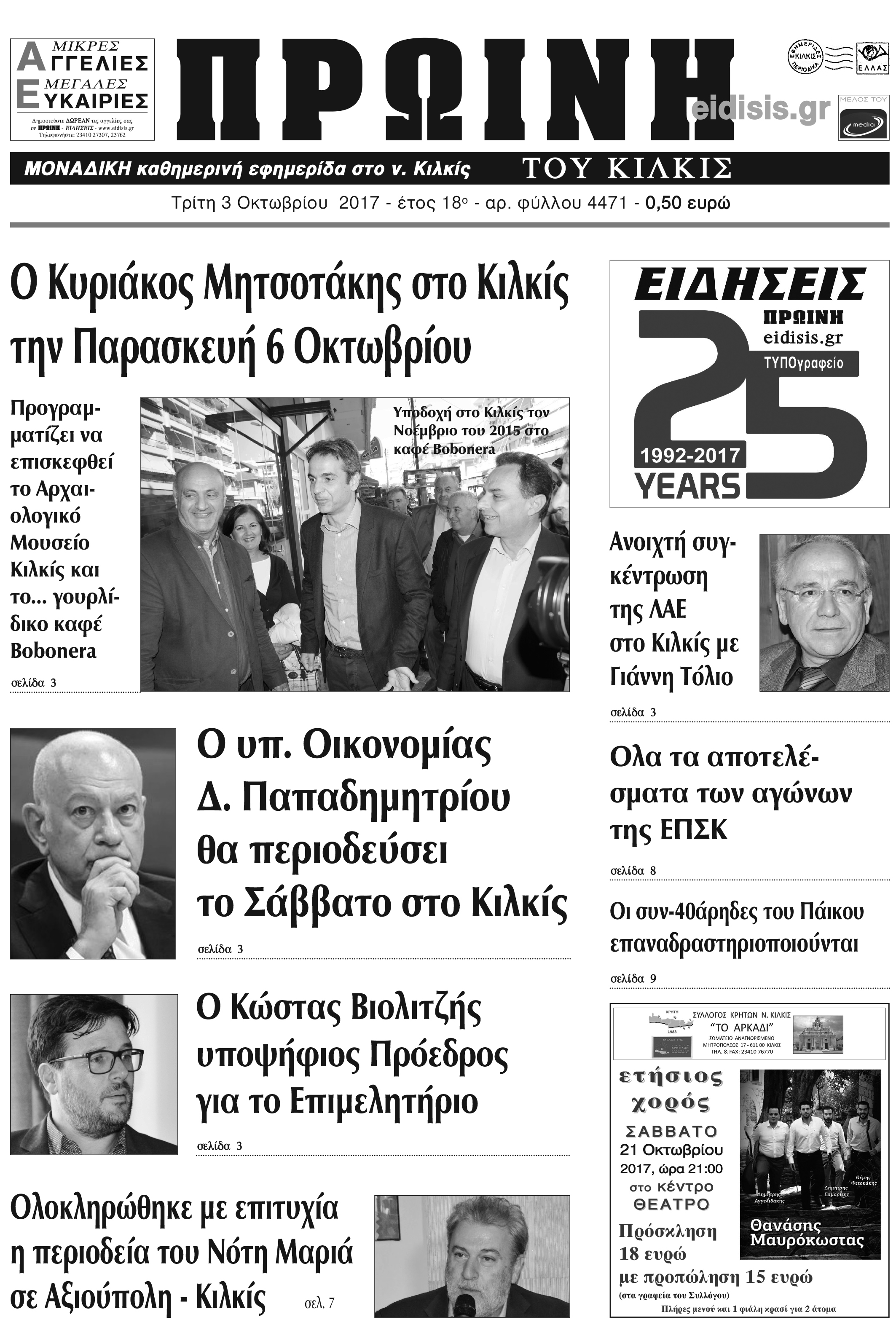 Πέντε χρόνια πριν. Διαβάστε τι έγραφε η καθημερινή εφημερίδα ΠΡΩΙΝΗ του Κιλκίς (3-10-2017)