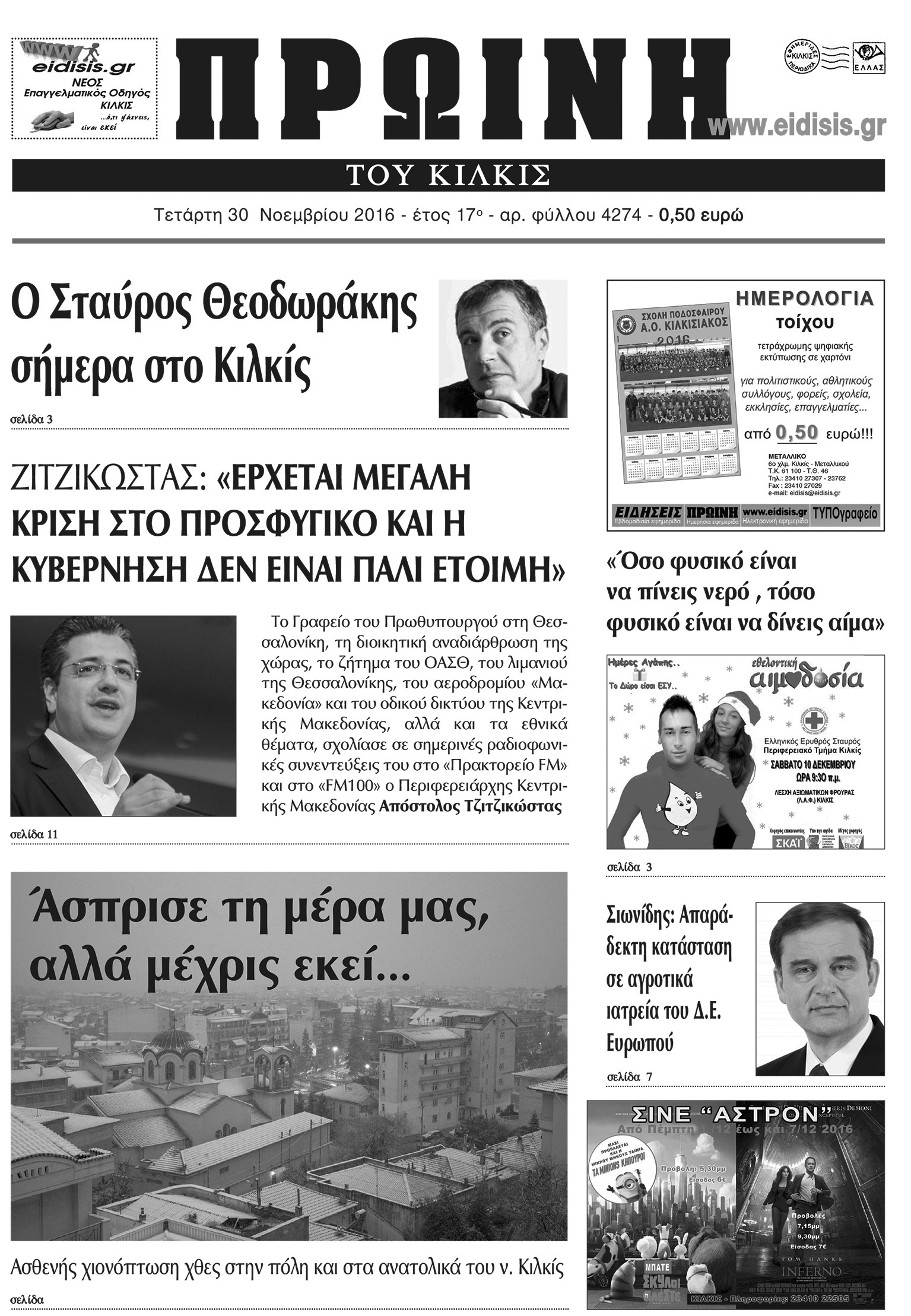 Πέντε χρόνια πριν. Διαβάστε τι έγραφε η καθημερινή εφημερίδα ΠΡΩΙΝΗ του Κιλκίς (30-11-2016)