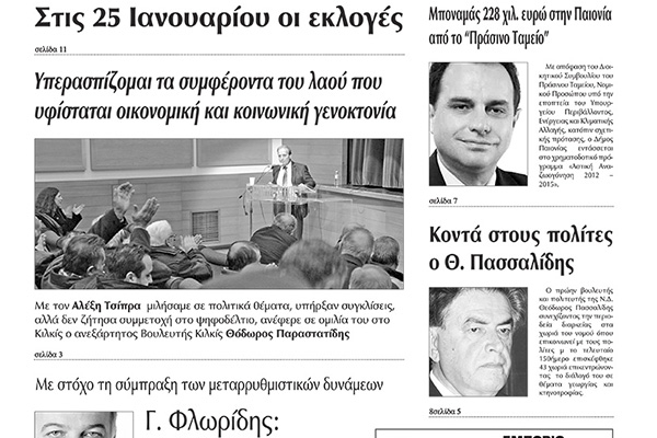 Πέντε χρόνια πριν. Διαβάστε τι έγραφε η καθημερινή εφημερίδα ΠΡΩΙΝΗ του Κιλκίς (30-12-2014)