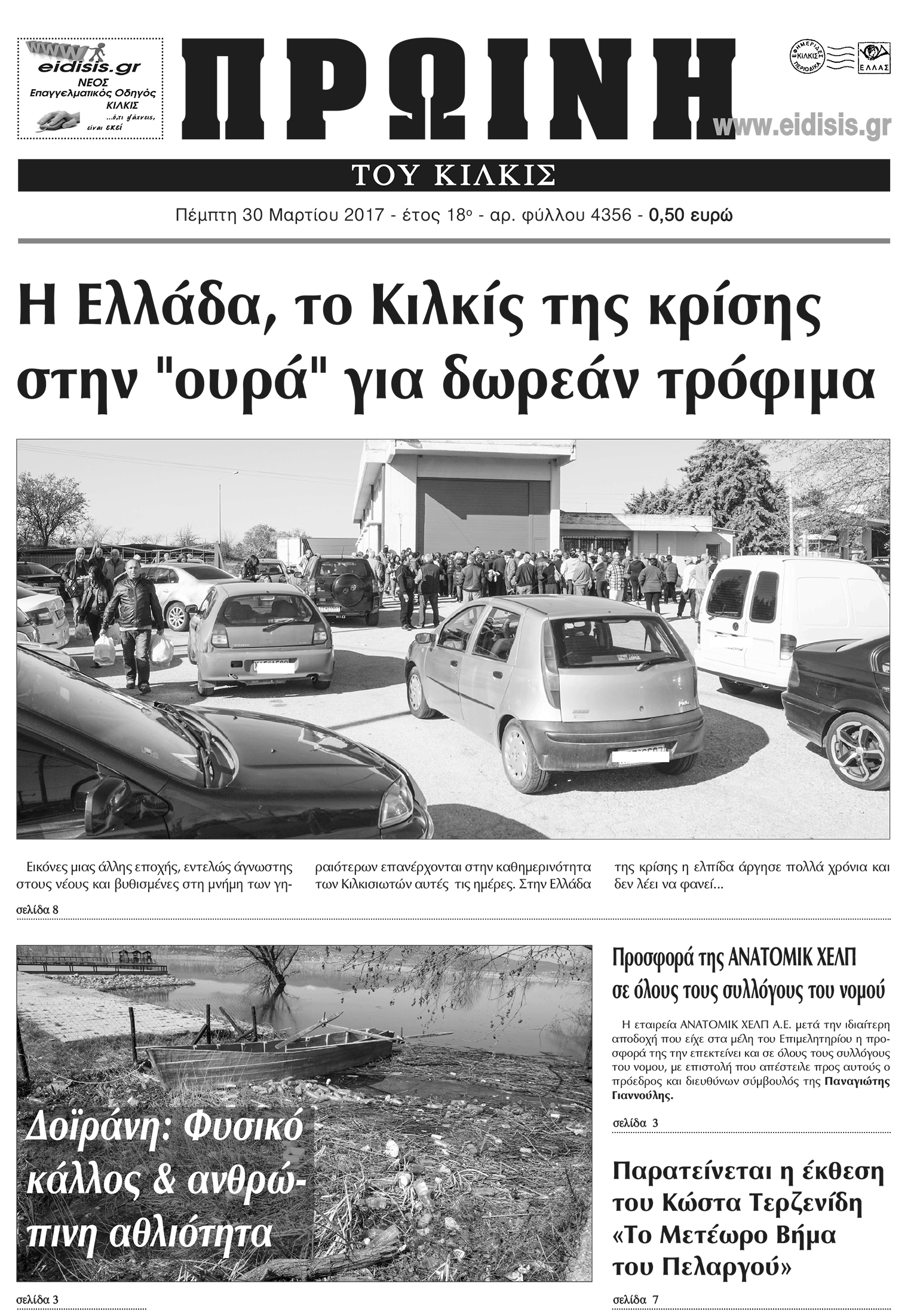 Πέντε χρόνια πριν. Διαβάστε τι έγραφε η καθημερινή εφημερίδα ΠΡΩΙΝΗ του Κιλκίς (30-3-2017)