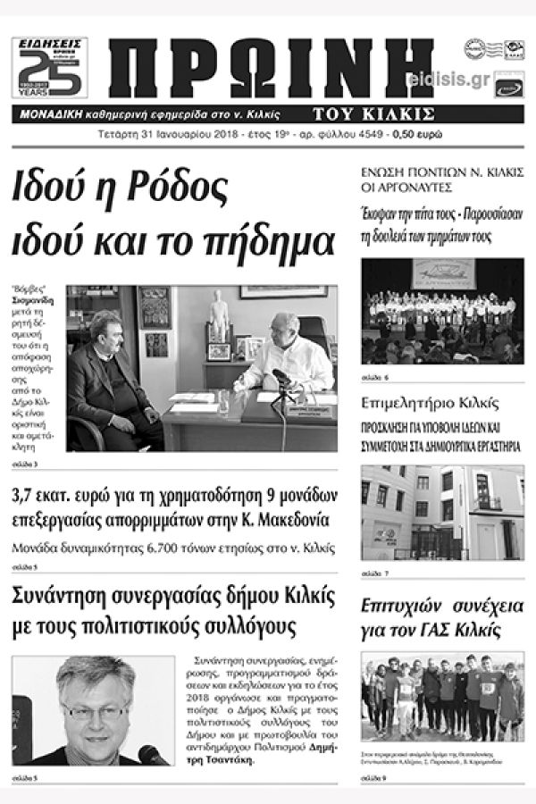 Πέντε χρόνια πριν. Διαβάστε τι έγραφε η καθημερινή εφημερίδα ΠΡΩΙΝΗ του Κιλκίς (31-1-2018)