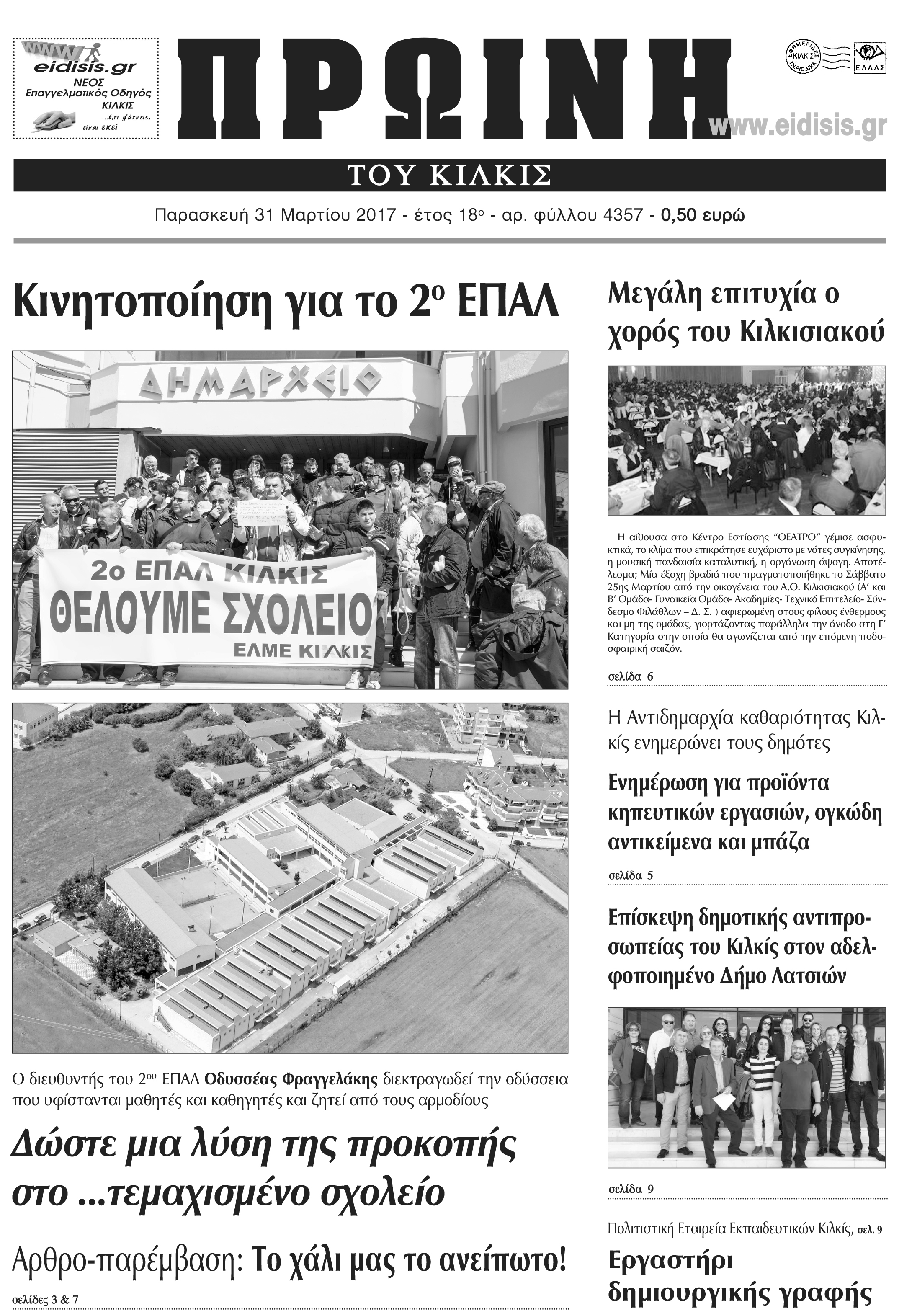 Πέντε χρόνια πριν. Διαβάστε τι έγραφε η καθημερινή εφημερίδα ΠΡΩΙΝΗ του Κιλκίς (31-3-2017)