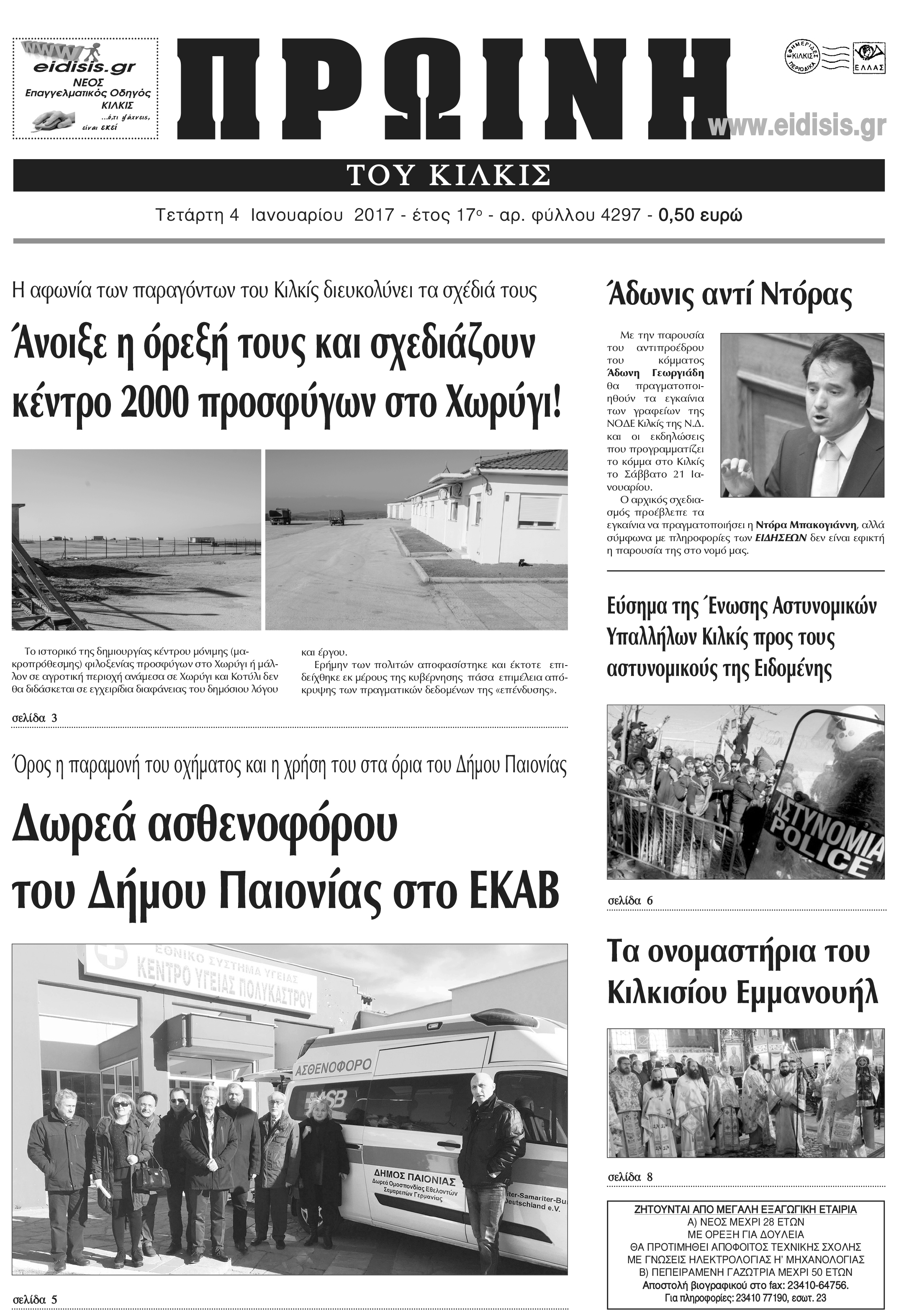 Πέντε χρόνια πριν. Διαβάστε τι έγραφε η καθημερινή εφημερίδα ΠΡΩΙΝΗ του Κιλκίς (4-1-2017)