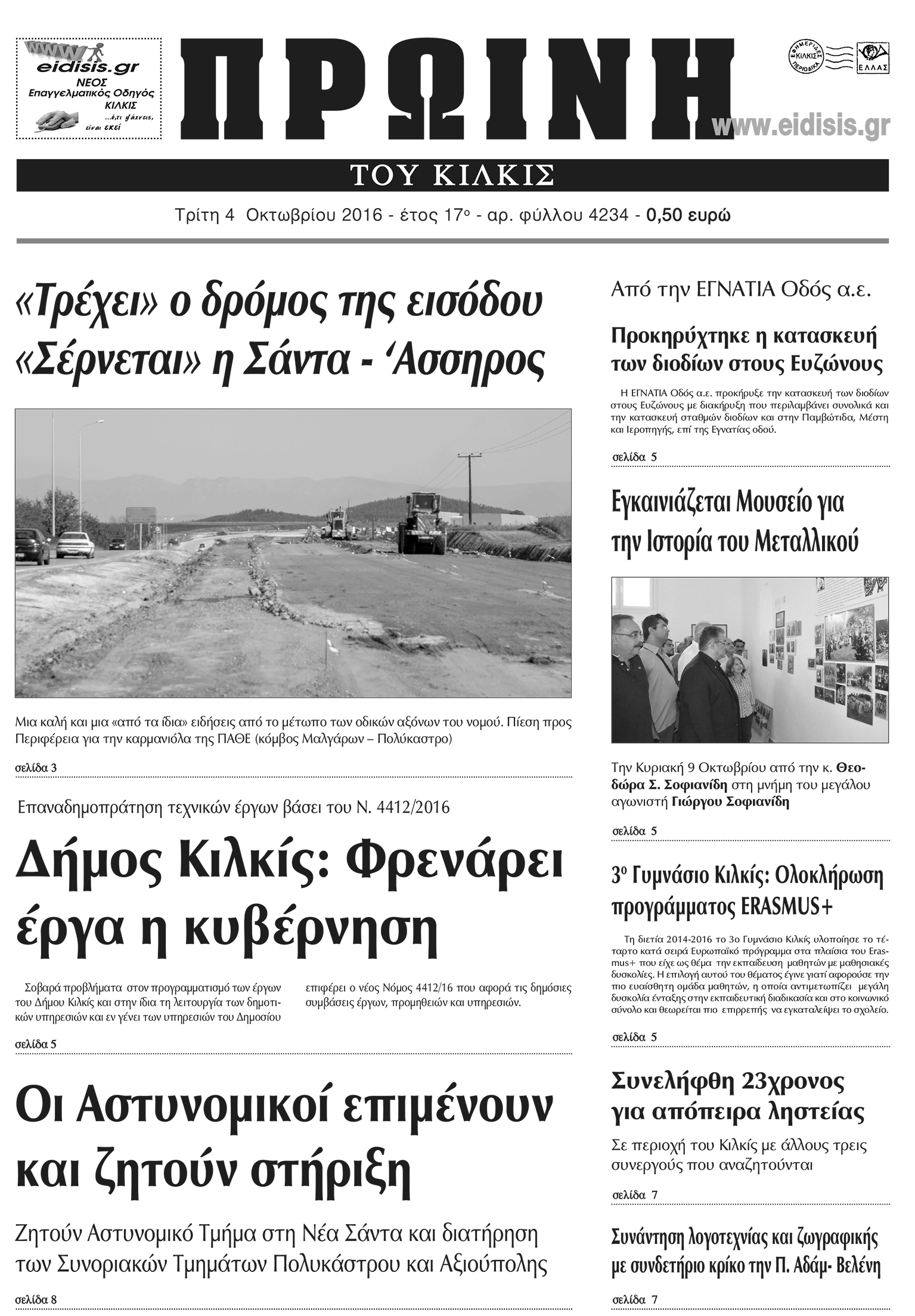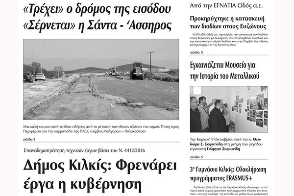Πέντε χρόνια πριν. Διαβάστε τι έγραφε η καθημερινή εφημερίδα ΠΡΩΙΝΗ του Κιλκίς (4-10-2016)