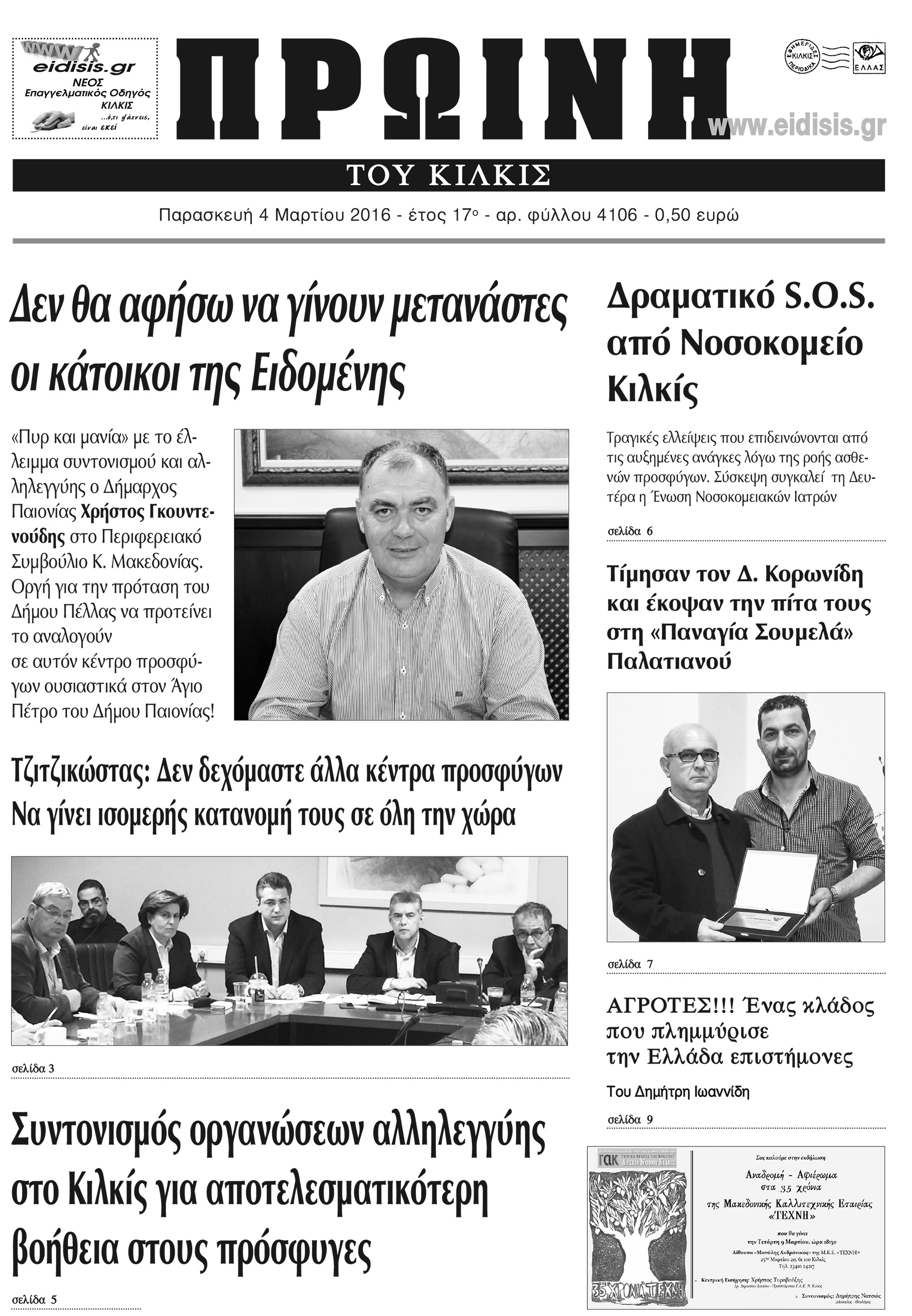 Πέντε χρόνια πριν. Διαβάστε τι έγραφε η καθημερινή εφημερίδα ΠΡΩΙΝΗ του Κιλκίς (4-3-2016)
