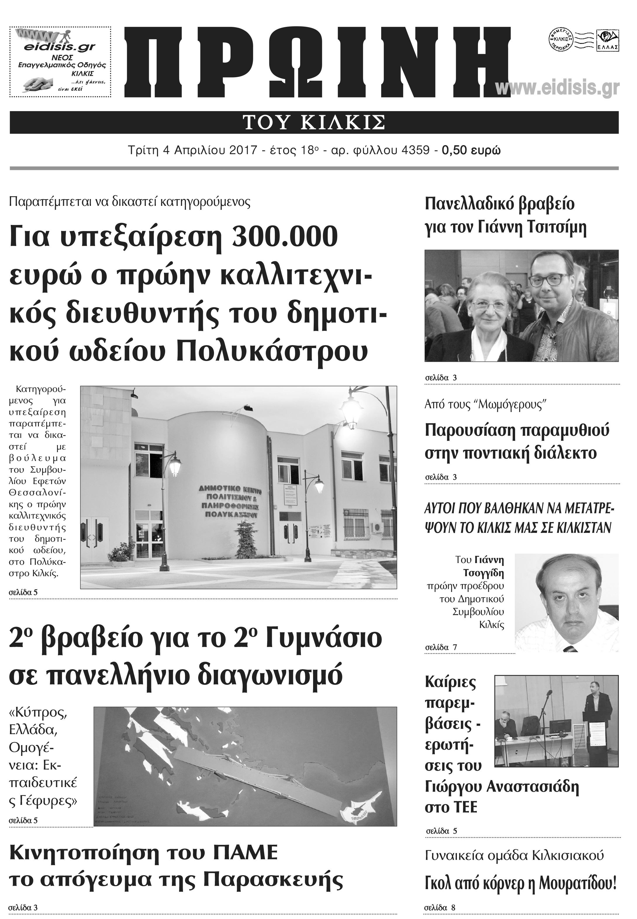 Πέντε χρόνια πριν. Διαβάστε τι έγραφε η καθημερινή εφημερίδα ΠΡΩΙΝΗ του Κιλκίς (4-4-2017)