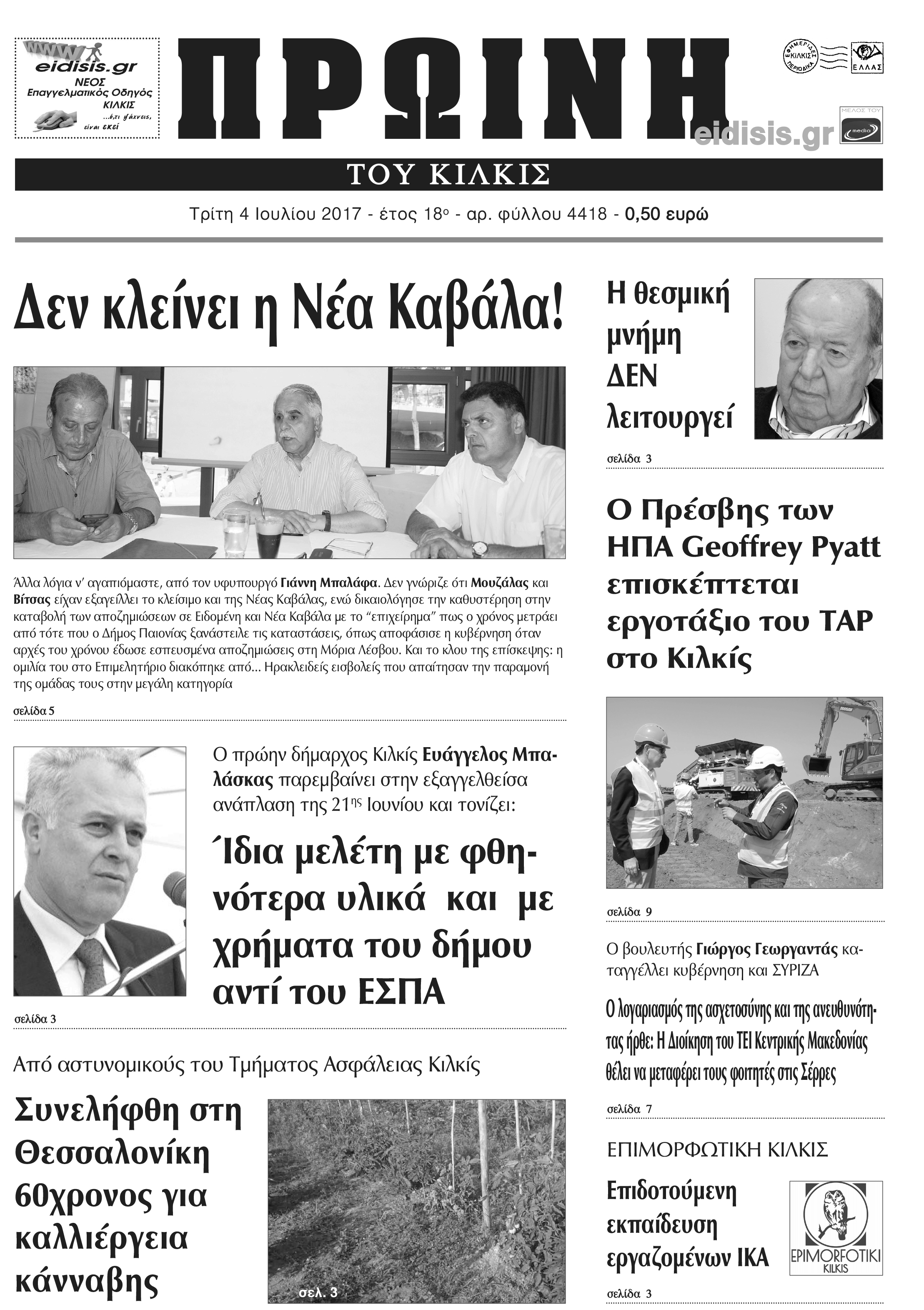 Πέντε χρόνια πριν. Διαβάστε τι έγραφε η καθημερινή εφημερίδα ΠΡΩΙΝΗ του Κιλκίς (4-7-2017)