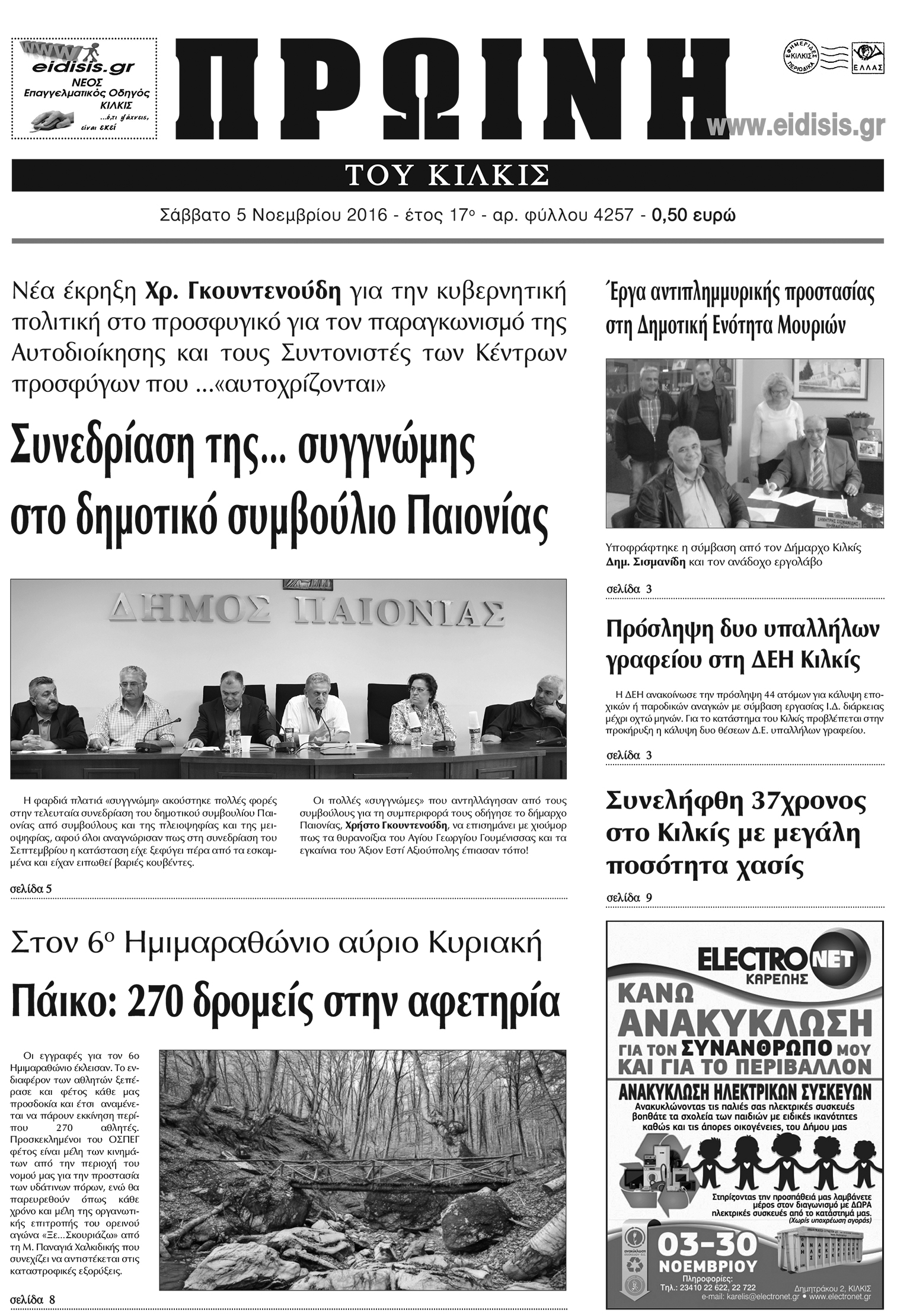 Πέντε χρόνια πριν. Διαβάστε τι έγραφε η καθημερινή εφημερίδα ΠΡΩΙΝΗ του Κιλκίς (5-11-2016)