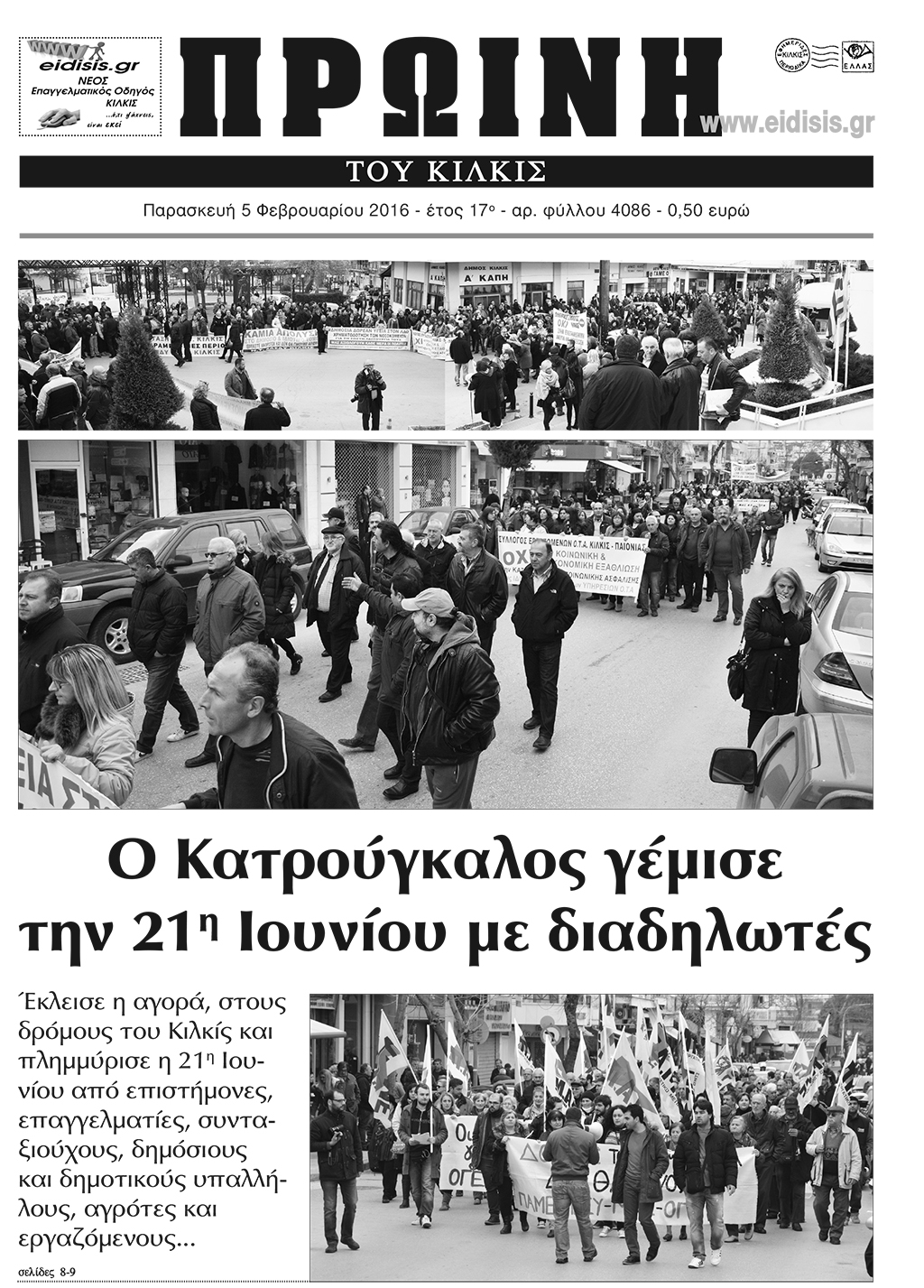 Πέντε χρόνια πριν. Διαβάστε τι έγραφε η καθημερινή εφημερίδα ΠΡΩΙΝΗ του Κιλκίς (5-2-2016)
