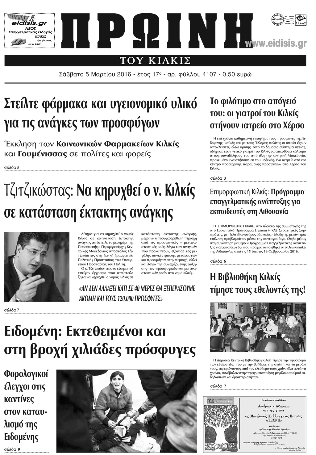 Πέντε χρόνια πριν. Διαβάστε τι έγραφε η καθημερινή εφημερίδα ΠΡΩΙΝΗ του Κιλκίς (5-3-2016)