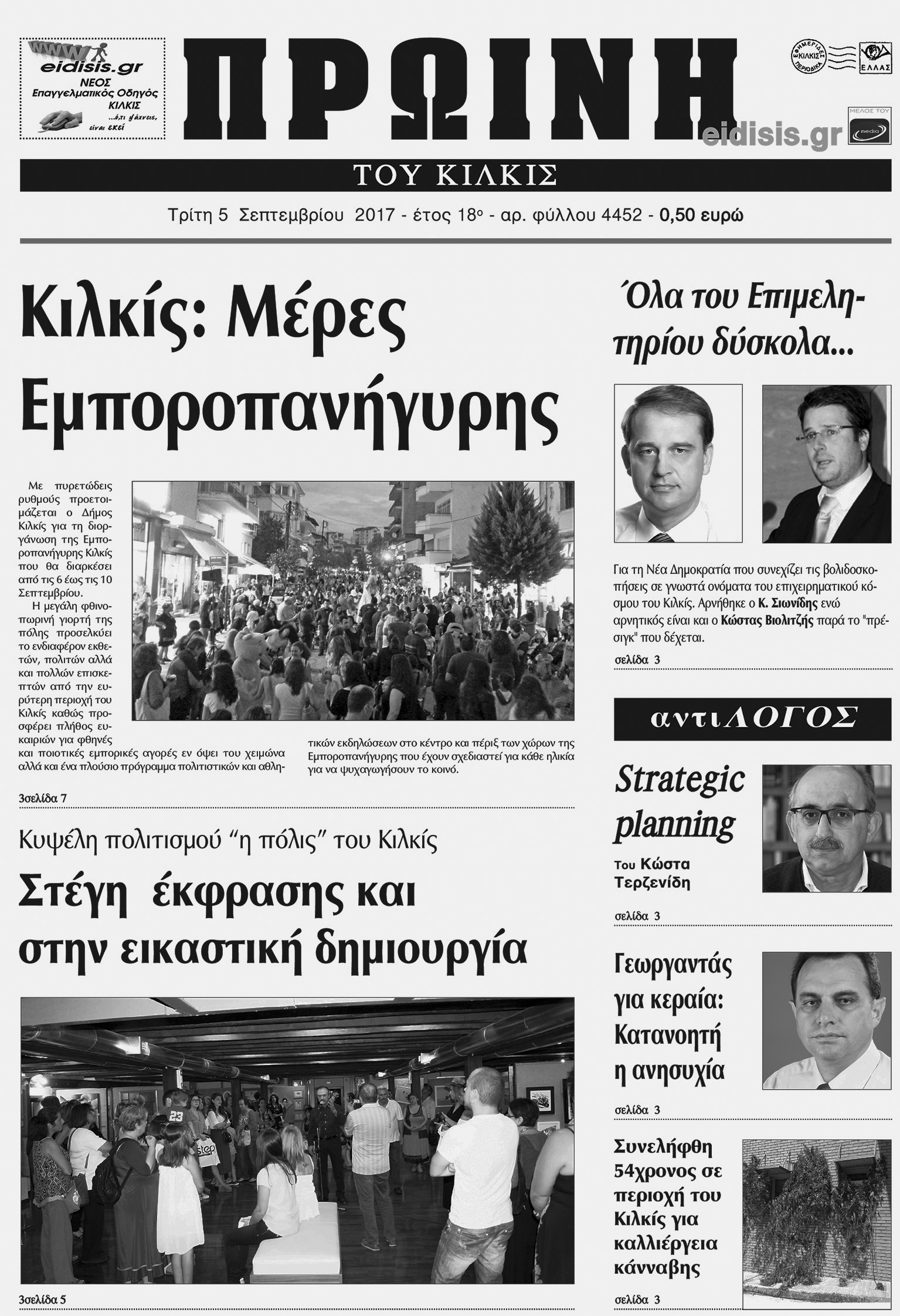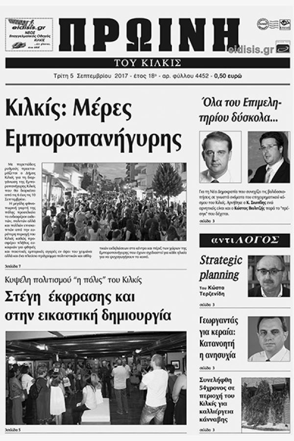 Πέντε χρόνια πριν. Διαβάστε τι έγραφε η καθημερινή εφημερίδα ΠΡΩΙΝΗ του Κιλκίς (5-9-2017)