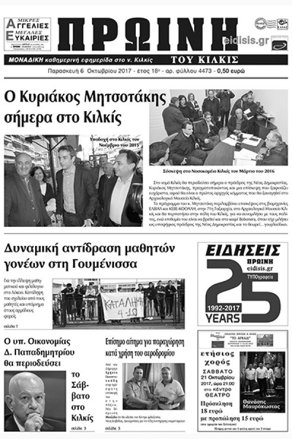 Πέντε χρόνια πριν. Διαβάστε τι έγραφε η καθημερινή εφημερίδα ΠΡΩΙΝΗ του Κιλκίς (6-10-2017)