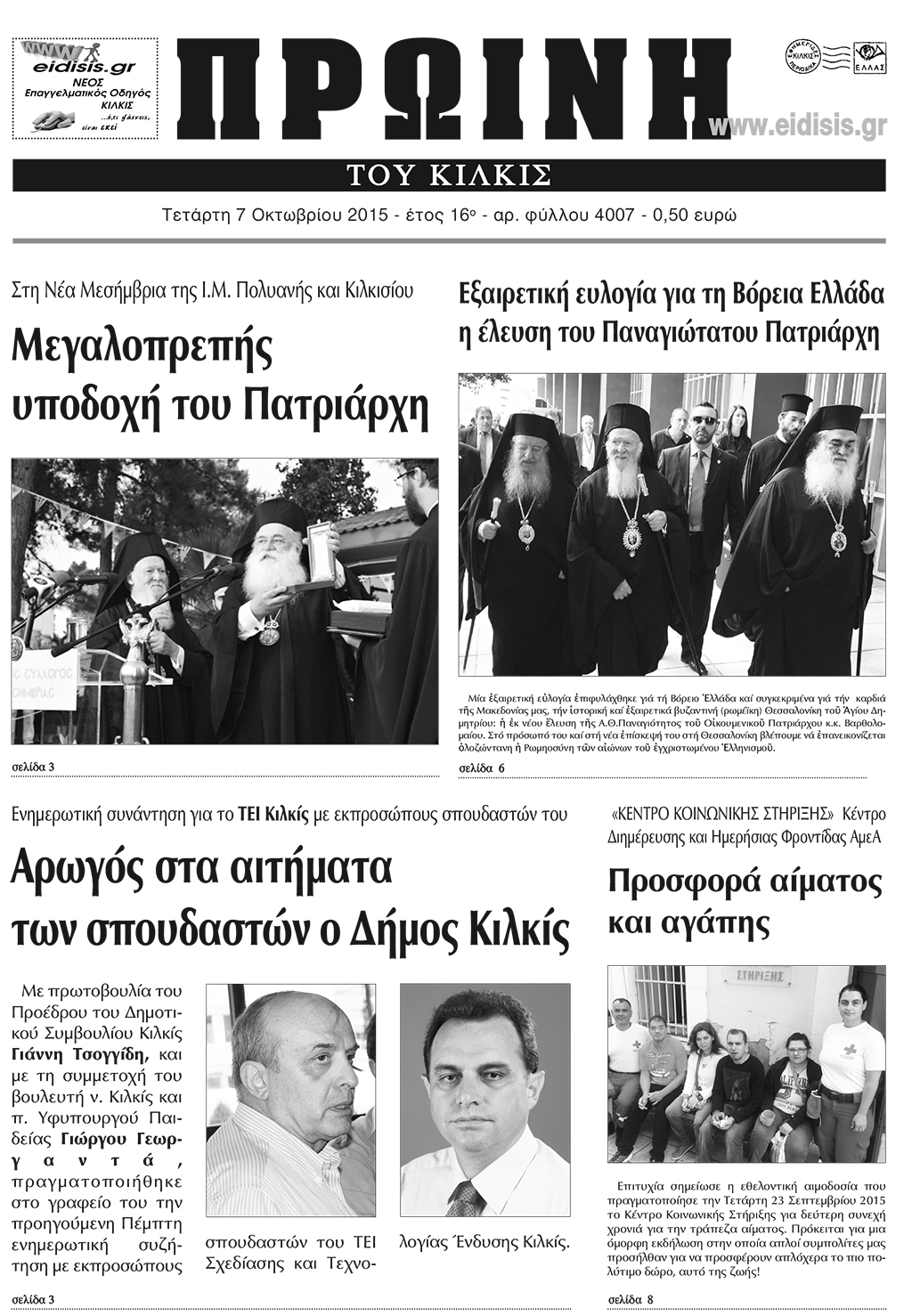 Πέντε χρόνια πριν. Διαβάστε τι έγραφε η καθημερινή εφημερίδα ΠΡΩΙΝΗ του Κιλκίς (7-10-2015)