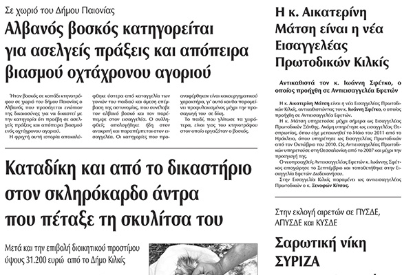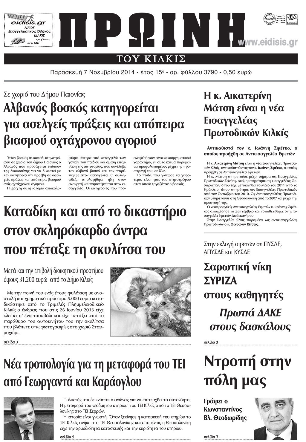 Πέντε χρόνια πριν. Διαβάστε τι έγραφε η καθημερινή εφημερίδα ΠΡΩΙΝΗ του Κιλκίς (7-11-2014)
