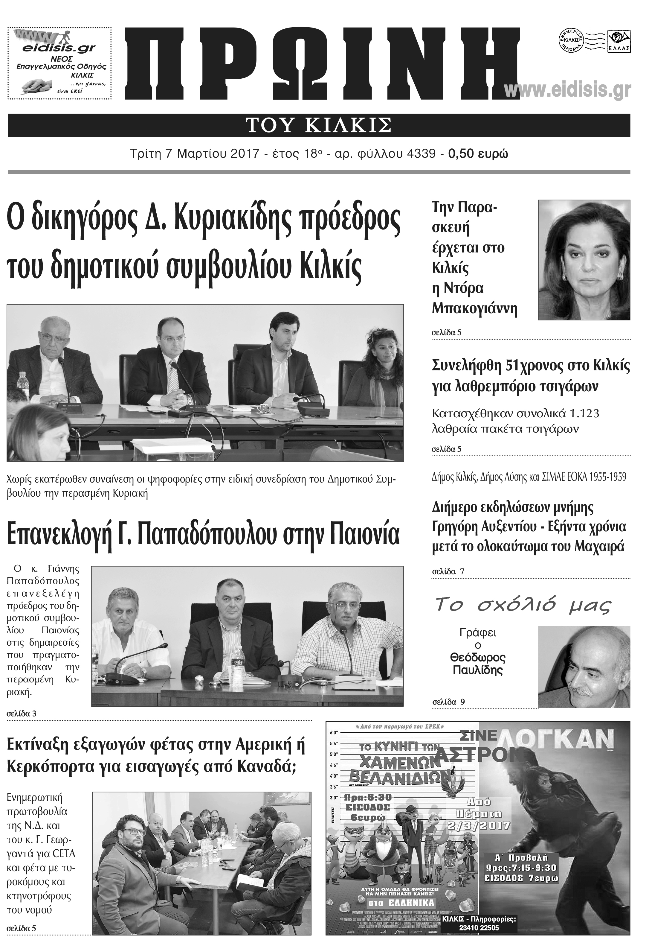 Πέντε χρόνια πριν. Διαβάστε τι έγραφε η καθημερινή εφημερίδα ΠΡΩΙΝΗ του Κιλκίς (7-3-2017)
