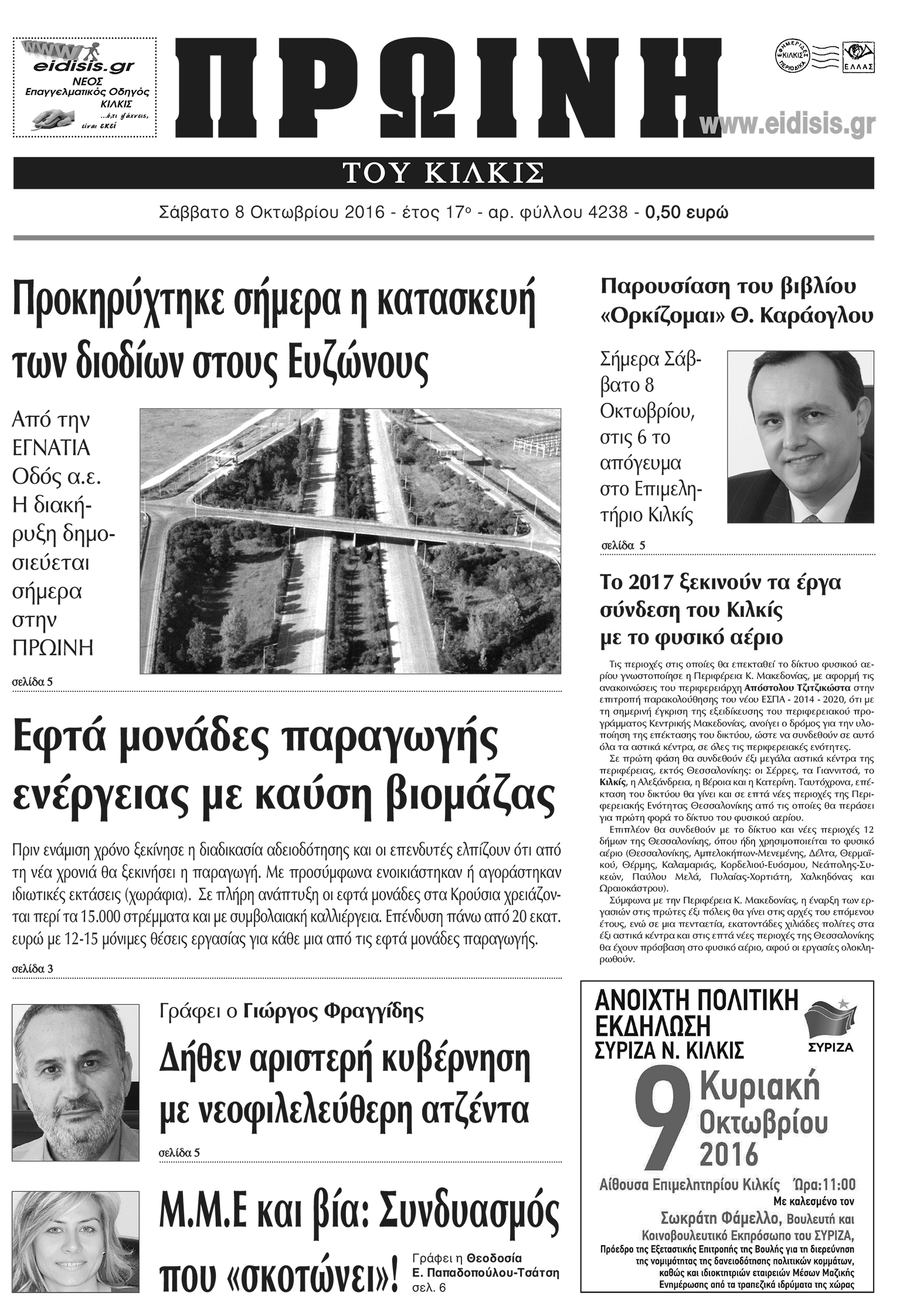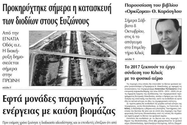 Πέντε χρόνια πριν. Διαβάστε τι έγραφε η καθημερινή εφημερίδα ΠΡΩΙΝΗ του Κιλκίς (8-10-2016)