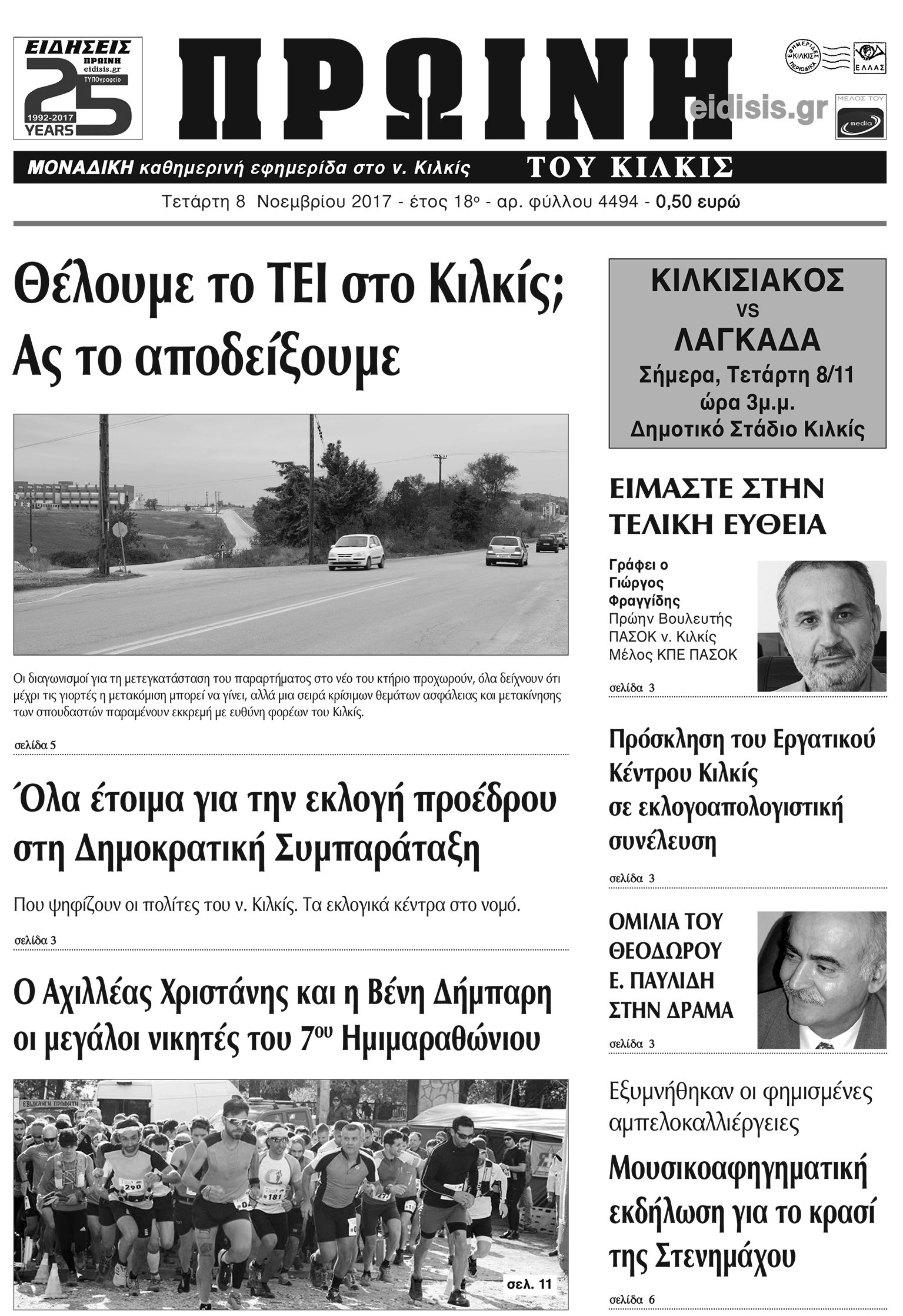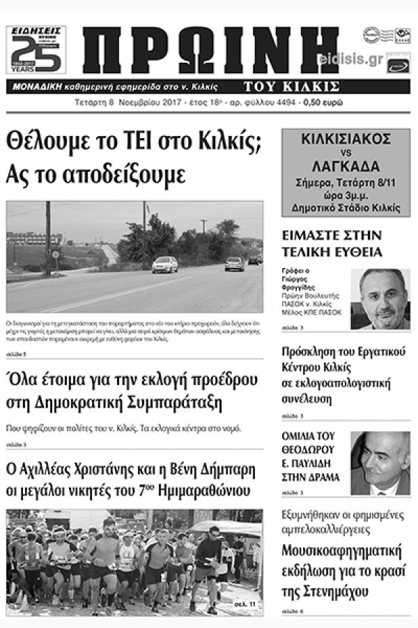 Πέντε χρόνια πριν. Διαβάστε τι έγραφε η καθημερινή εφημερίδα ΠΡΩΙΝΗ του Κιλκίς (8-11-2017)
