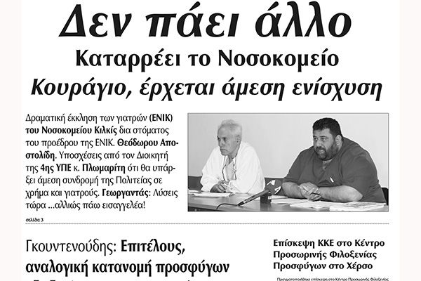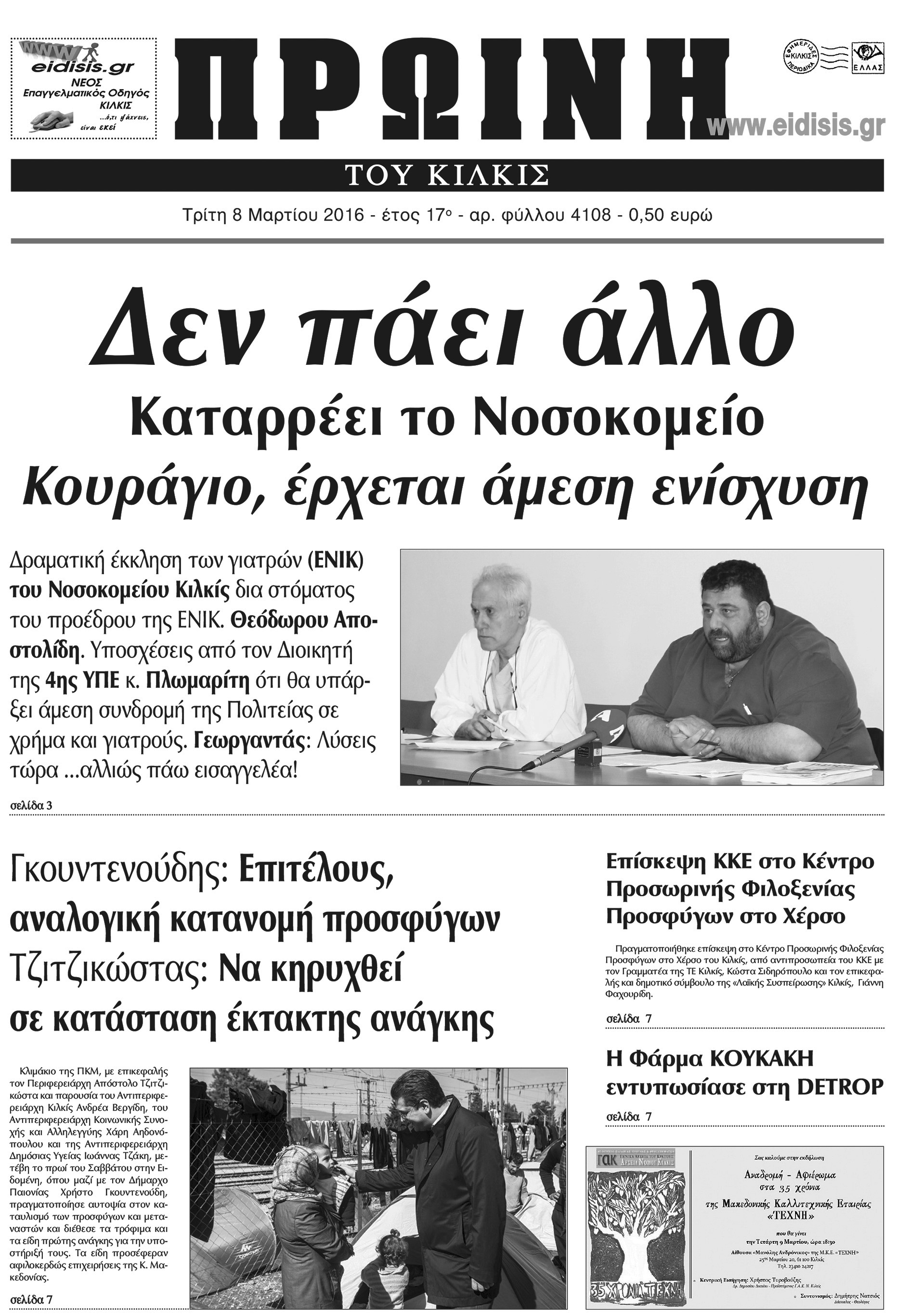 Πέντε χρόνια πριν. Διαβάστε τι έγραφε η καθημερινή εφημερίδα ΠΡΩΙΝΗ του Κιλκίς (8-3-2016)