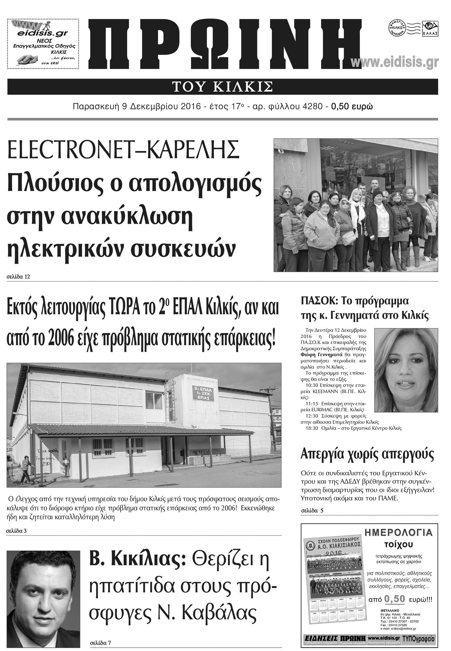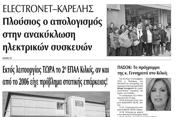 Πέντε χρόνια πριν. Διαβάστε τι έγραφε η καθημερινή εφημερίδα ΠΡΩΙΝΗ του Κιλκίς (9-12-2016)