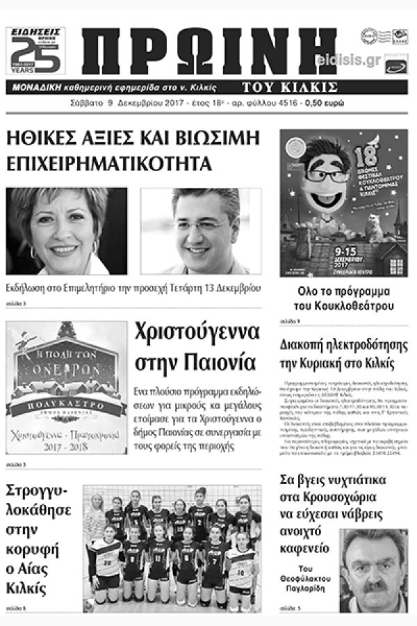 Πέντε χρόνια πριν. Διαβάστε τι έγραφε η καθημερινή εφημερίδα ΠΡΩΙΝΗ του Κιλκίς (9-12-2017)