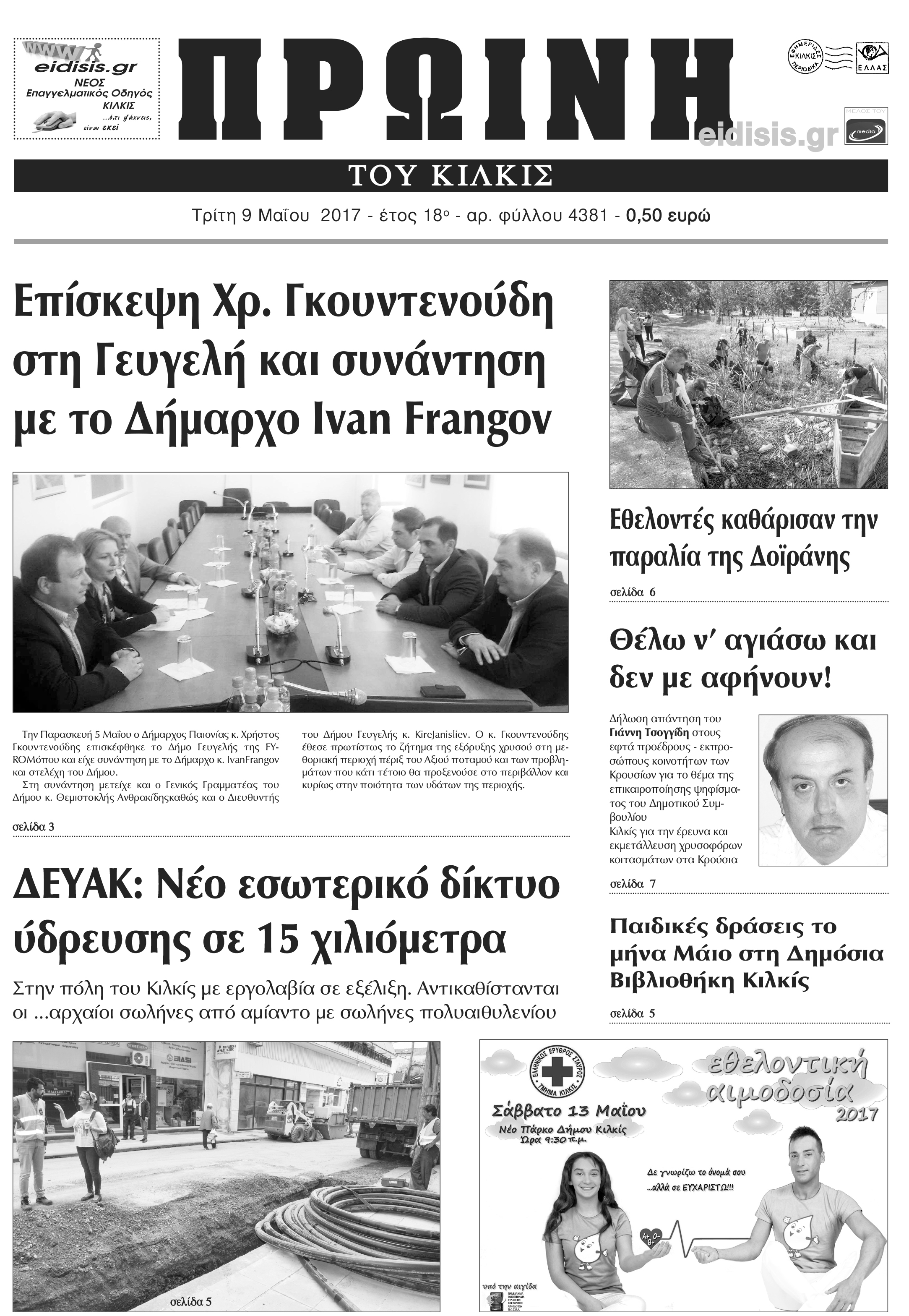 Πέντε χρόνια πριν. Διαβάστε τι έγραφε η καθημερινή εφημερίδα ΠΡΩΙΝΗ του Κιλκίς (9-5-2017)