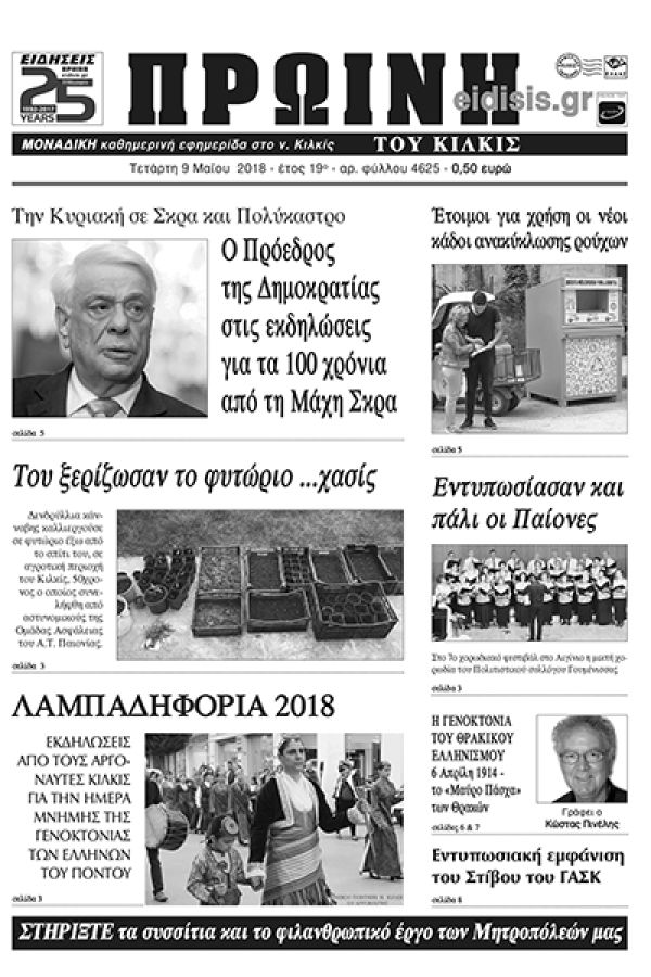 Πέντε χρόνια πριν. Διαβάστε τι έγραφε η καθημερινή εφημερίδα ΠΡΩΙΝΗ του Κιλκίς (9-5-2018)