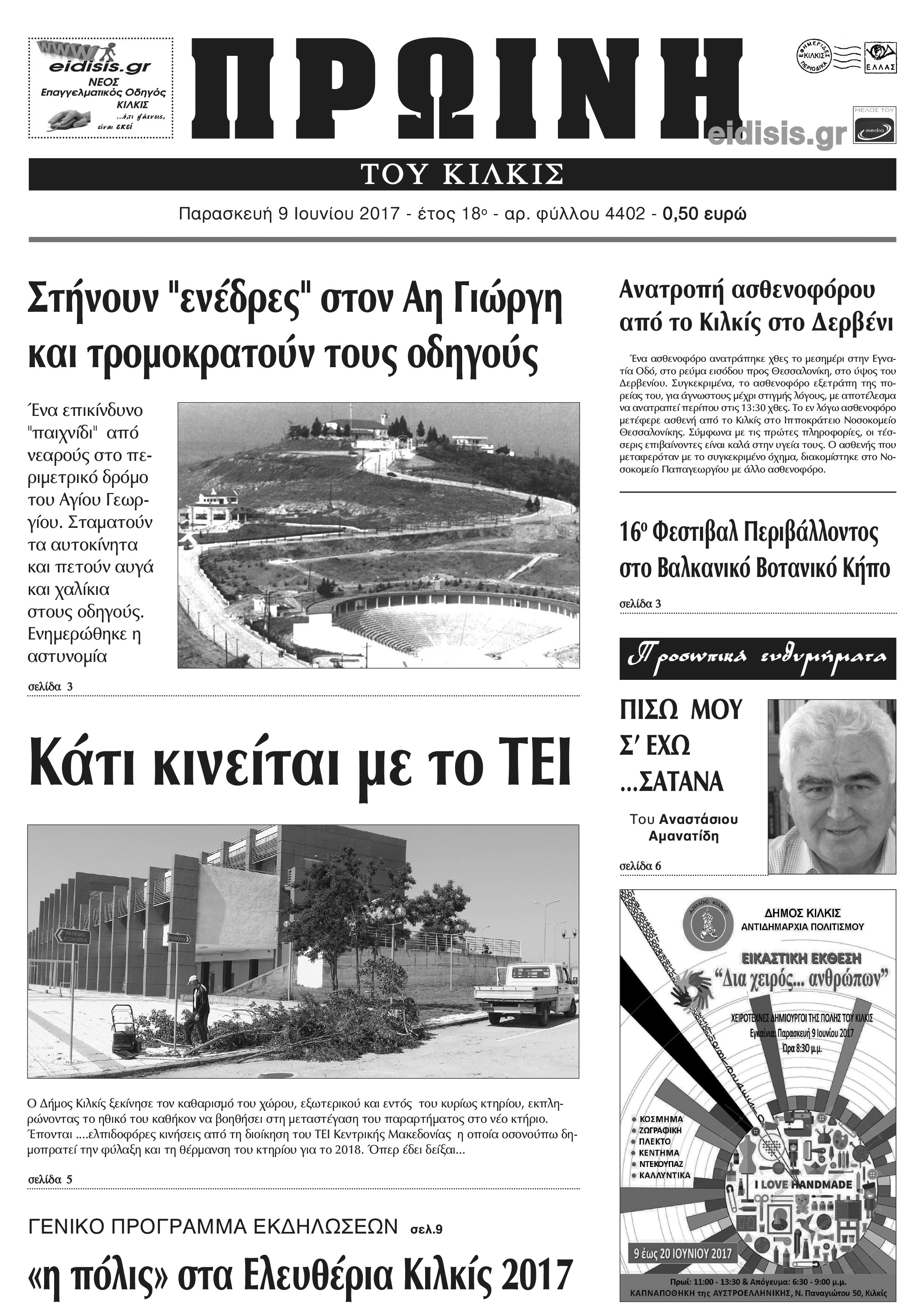 Πέντε χρόνια πριν. Διαβάστε τι έγραφε η καθημερινή εφημερίδα ΠΡΩΙΝΗ του Κιλκίς (9-6-2017)
