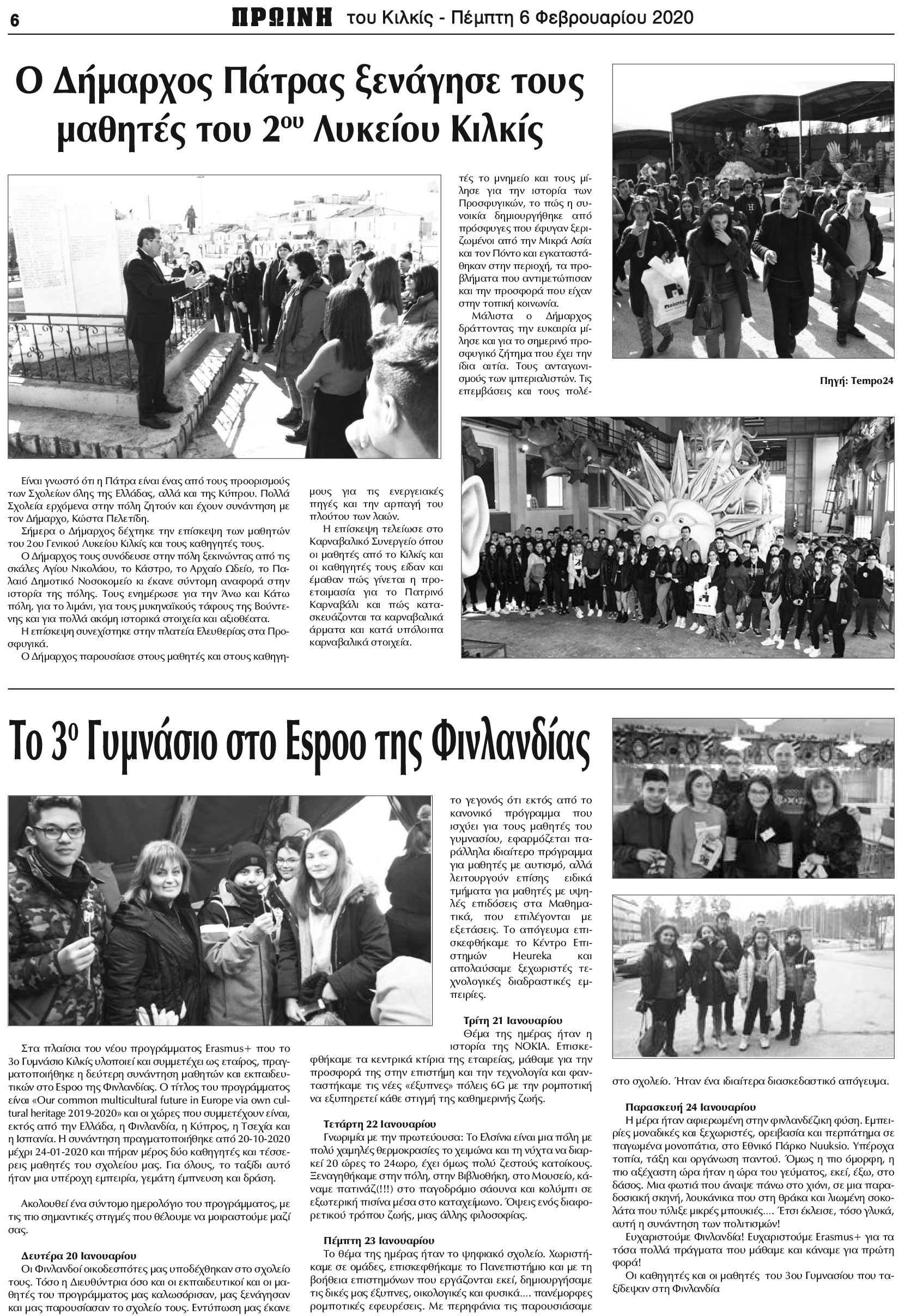 Πρωινή Κιλκίς (6-2-2020): Το 2ο Λύκειο Κιλκίς στην Πάτρα, το 3ο Γυμνάσιο στη Φινλανδία