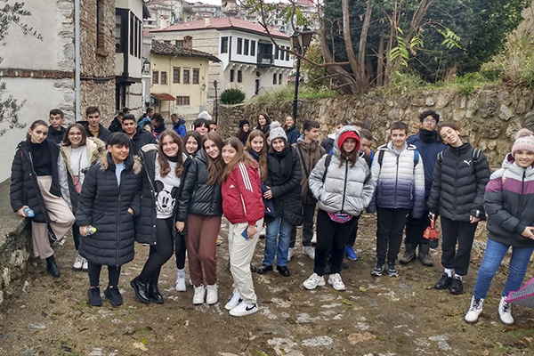 Πρώτη στάση στην πανέμορφη και γραφική Καστοριά, όπου οι μαθητές/τριες μαζί με τους εκπαιδευτικούς τους περιηγήθηκαν στο παλιό παραδοσιακό αρχοντικό Νεράτζη Αϊβάζη και ταξίδεψαν στον χρόνο, τότε που το αρχοντικό ήταν γεμάτο από την καθημερινή ζωή αυτών που διέμεναν στους χώρους του, δεκάδες χρόνια πίσω. Στη συνέχεια περπάτησαν στο Ντολτσό, την παλιά παραδοσιακή συνοικία της πόλης και το μεσημέρι, περνώντας τα σύνορα από το τελωνείο της Κρυσταλλοπηγής, έφτασαν στον τελικό τους προορισμό, στην Κορυτσά.