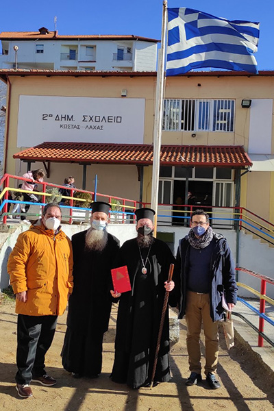 Επιπλέον τόνισε την ανάγκη συνεργασίας και επικοινωνίας των σχολείων της Ι. Μητροπόλεως με ακριτικές σχολικές μονάδες που φοιτούν λίγοι μαθητές, αλλά και με σχολικές μονάδες του εξωτερικού που φοιτούν γόνοι Ελλήνων μεταναστών. Στο πλαίσιο αυτό ο Γενικός Δ/ντης της Μ.Κ.Ο. της Εκκλησίας της Ελλάδος «Αποστολή» κος Κωνσταντίνος Δήμτσας ανέφερε ότι θα μοιραστούν σε όλους και όλες τους μαθητές και τις μαθήτριες του σχολείου, τσάντες με σχολικό υλικό, προσφορά των Ελληνόπουλων της Αμερικής, εκφράζοντας την ευχή, η πράξη αυτή να αποτελέσει την απαρχή μιας ευρύτερης επικοινωνίας και συνεργασίας.