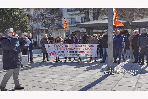 Με μεγάλη συμμετοχή, πραγματοποιήθηκε την Τετάρτη 15 Φεβρουαρίου, η συγκέντρωση των εκπαιδευτικών και των δασκάλων στον πλατεία Ειρήνης του Κιλκίς.