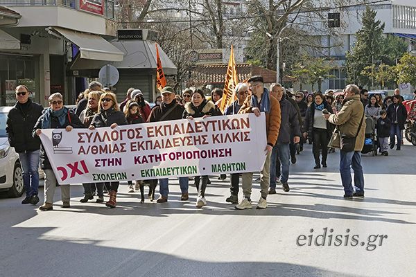 Οι δάσκαλοι και οι καθηγητές του Κιλκίς συμμετείχαν στην Πανελλαδική απεργία της ΟΛΜΕ, αντιδρώντας στην υλοποίηση αξιολόγησης των εκπαιδευτικών από την κυβέρνηση.