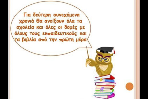 • Για δεύτερη συνεχόμενη χρονιά θα έχουν ανοίξει όλα τα σχολεία και όλες οι δομές με όλους τους εκπαιδευτικούς και τα βιβλία από την πρώτη ημέρα.
