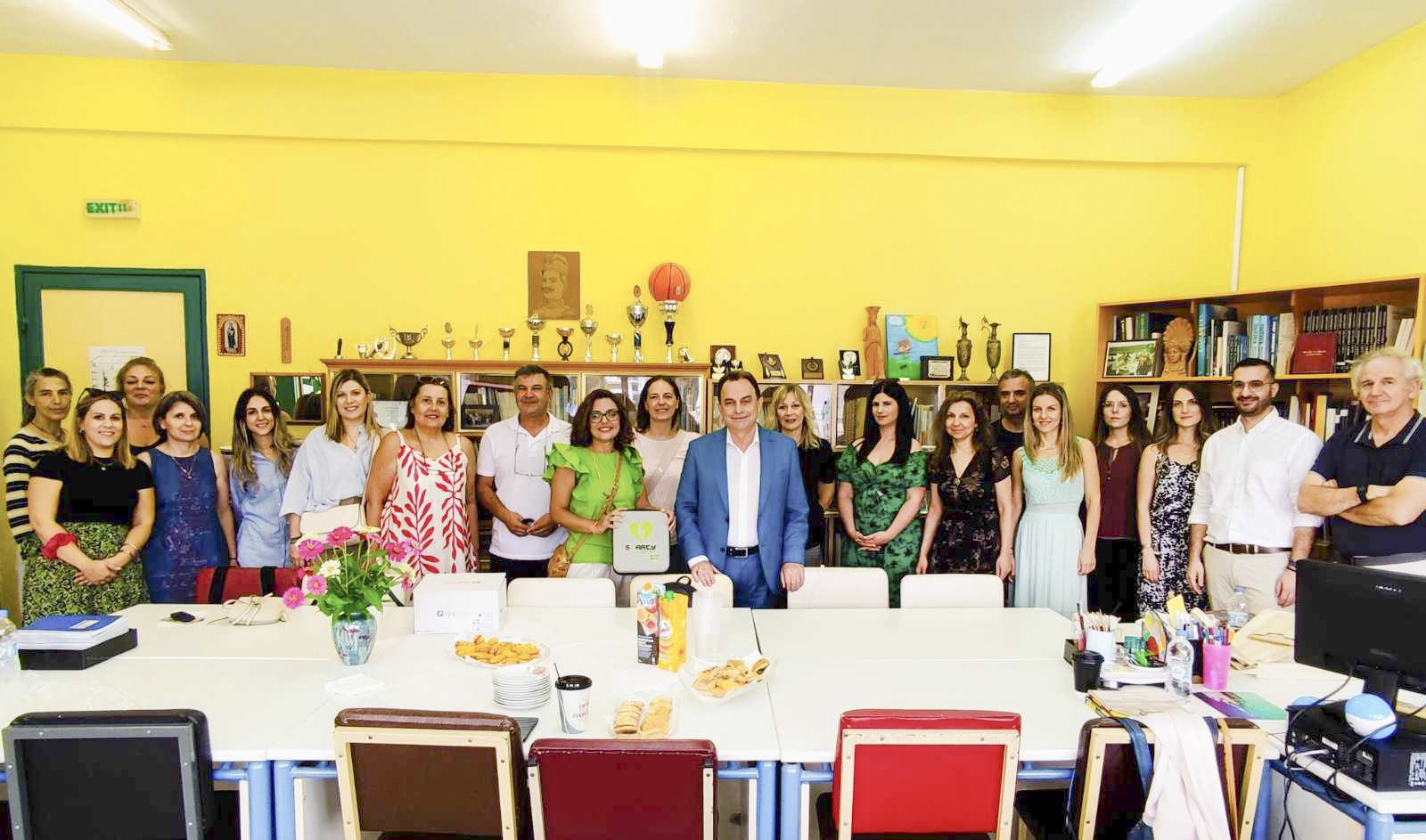 Ο λόγος της επίσκεψης ήταν ιδιαίτερα σημαντικός, διότι αφορούσε προσωπική δωρεά του κου Γεωργαντά ενός απινιδωτή στη σχολική μας μονάδα. Ενημερωτικά, για όσους δεν γνωρίζουν, το μηχάνημα αυτό μπορεί να σώσει μία ανθρώπινη ζωή σε μία κρίσιμη κατάσταση, επαναφέροντας την καρδιακή λειτουργία, σε συνδυασμό πάντοτε με εφαρμογή Κάρπα.
