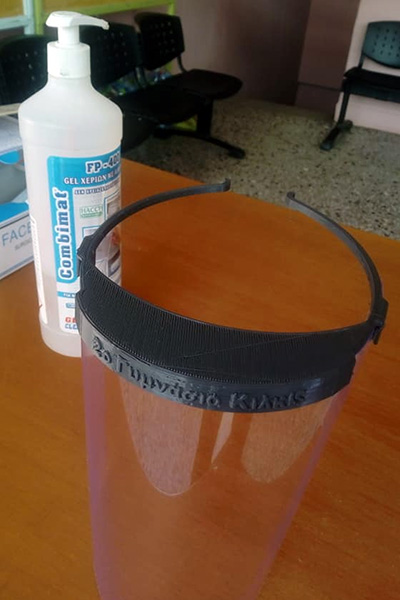 Οι ασπίδες προσώπου (περισσότερες από 350) έχουν σχεδιασθεί και εκτυπωθεί στα εργαστήρια του σχολείου που διαθέτουν τον ανάλογο εξοπλισμό.