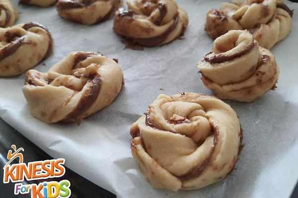 Η εβδομάδα μας έκλεισε γλυκά. Η αγάπη μας για τη σοκολάτα και τη μερέντα μας οδήγησε να στην πιο νόστιμη γλυκιά δημιουργία. Μάθαμε βήμα βήμα να φτιάχνουμε αφράτα ψωμάκια με μερέντα. Αφού ενεργοποιήσαμε τη μαγιά μας σε ζεστό γάλα και δημιουργήσαμε δύο ακόμη μείγματα αυτά των αυγών και του βουτύρου, τα ενώσαμε όλα μαζί με το αλεύρι μας και αρχίσαμε το ζύμωμα. Μετά, με πλάστη ανοίξαμε το ζυμάρι μας και στο μισό απλώσαμε τη μερέντα και με το άλλο μισό το σκεπάσαμε. Στο τέλος χωρίσαμε τη ζύμη σε λωρίδες που στρυφογυρνώντας τες σχηματίσαμε όμορφα λουλουδάκια. Οι μικροί μας chef ξετρελάθηκαν πραγματικά και ήμασταν περήφανοι για το αποτέλεσμα.