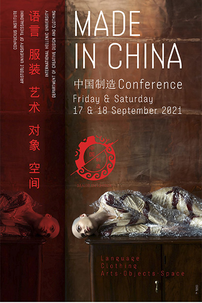 Το διεπιστημονικό συνέδριο με τίτλο ‘Made in China-中国制造’ θα διεξαχθεί στις 17-18 Σεπτεμβρίου 2021 διαδικτυακά και θα πλαισιωθεί από την έκθεση των ενδυμάτων & σχεδίων που θα πραγματοποιηθεί στον χώρο Le’ Cercle de Salonique (Βας. Ηρακλείου 7, Θεσσαλονίκη) με έναρξη 01/10/21 και, στη συνέχεια, στο Ινστιτούτο Κομφούκιος του Α.Π.Θ., Θεσσαλονίκης, σε μέρες και ώρες που θα ανακοινωθούν θα αναρτηθούν στην ιστοσελίδα του Ινστιτούτου (http://confucius-institute.web.auth.gr/el) και στα μέσα δικτύωσης της ομάδας.