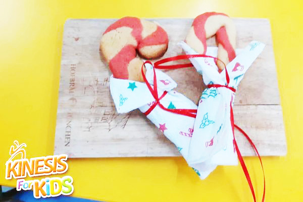 Η μαγειρική μας δε θα γινόταν να μην έχει χριστουγεννιάτικο χαρακτήρα, γι’ αυτό και φτιάξαμε κάτι μοναδικό· πολύχρωμα μπαστουνάκια μπισκότα. Ζυμώσαμε, πλάσαμε, δώσαμε σχήμα, ψήσαμε κι έτοιμα να γευτούμε τη νοστιμιά μας.