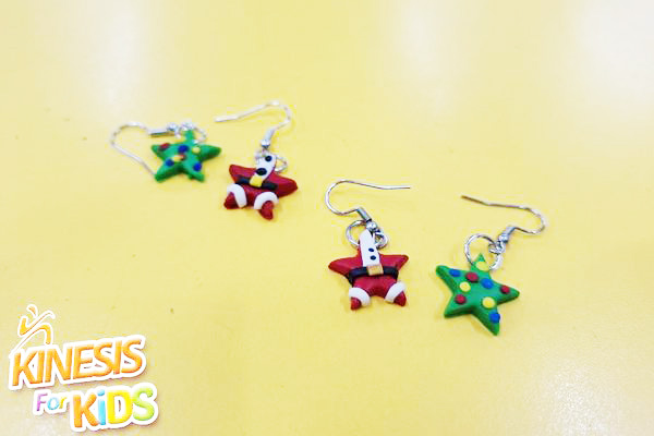 Στο εργαστήρι fimoκατασκευής τα κορίτσια μας έφτιαξαν τα απαραίτητα χριστουγεννιάτικα αξεσουάρ για τις μέρες των Χριστουγέννων. Δημιούργησαν σκουλαρίκια αστεράκια, διακοσμώντας το ένα σαν χριστουγεννιάτικο δέντρο και το άλλο σαν στολή Άγιου-Βασίλη. Οι μικρές μας καλλιτέχνιδες θα λάμψουν στις διακοπές των Χριστουγέννων.