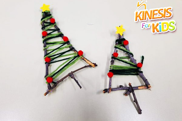 Σειρά είχαν τα εικαστικά, μιας που είχαμε και διάθεση για δημιουργία. Μιλήσαμε για τα χριστουγεννιάτικα έθιμα και επικεντρωθήκαμε στο έθιμο με τον στολισμό του χριστουγεννιάτικου δέντρου. Μάθαμε γιατί στολίζουμε έλατο και τι συμβολίζει το αστέρι και τα κόκκινα στολίδια. Έπειτα, φτιάξαμε ένα πρωτότυπο στολίδι, ένα χριστουγεννιάτικο δέντρο από κλαδιά. Του πλέξαμε πράσινη κλωστή και το "στολίσαμε" με κόκκινα στολίδια και αστέρι στην κορυφή.