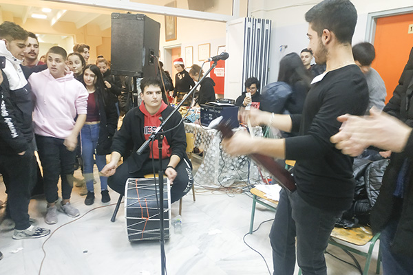 …Πάγκοι, χριστουγεννιάτικα στολισμένοι, μαθητές πίσω από αυτούς να ετοιμάζουν και να προσφέρουν δωρεάν σε όλους κρέπες με πραλίνα φουντουκιού και τριμμένο μπισκότο, χριστουγεννιάτικη μουσική, παραδοσιακά κάλαντα από τη χορωδία των μαθητών και ποντικοί χοροί συνοδευόμενοι από ποντιακή λύρα και νταούλι…