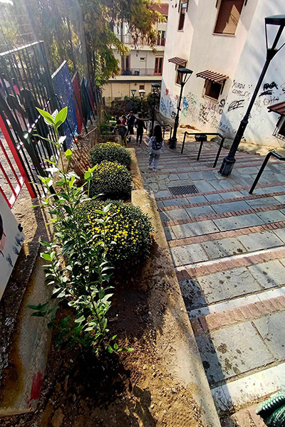 Η σκυτάλη πέρασε στη συνέχεια στους συμμαθητές τους από την Β’ τάξη, που εφοδιασμένοι με ποτιστήρια και μπουκαλάκια νερού, πότισαν τα λουλούδια.