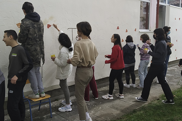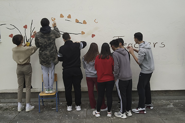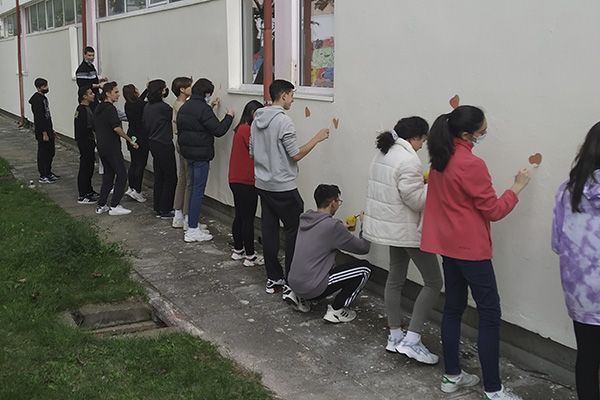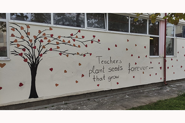 Τα παιδιά εφοδιάστηκαν με τα πινέλα, τα χρώματά τους αλλά και την καλύτερη διάθεσή τους και ζωγράφισαν τον τοίχο του σχολείου τους με τη βοήθεια της ζωγράφου κυρίας Μαρίας Παπαδοπούλου.