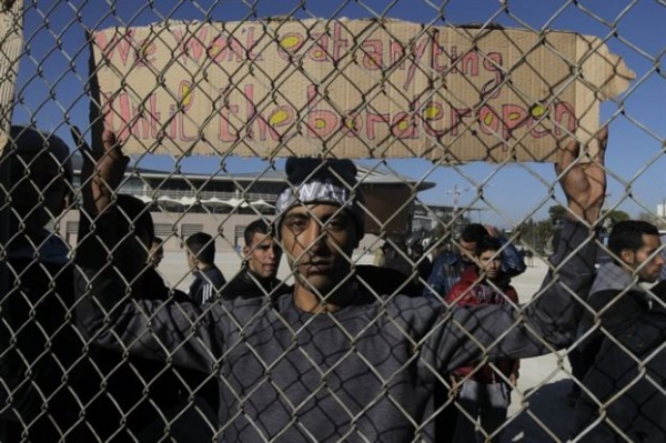 Την Κυριακή, οι μετανάστες προχώρησαν σε καθιστική διαμαρτυρία, αντιδρώντας στις συνθήκες διαμονής εντός του αθλητικού κέντρου.