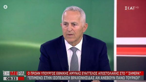«Βεβαίως πρέπει να ισχύει. Μα δεν έχεις άλλα περιθώρια. Διαφορετικά δεν υπάρχει υπόσταση κράτους. Δεν υπάρχει κυριαρχία. Δεν υπάρχουν Ένοπλες Δυνάμεις. Εάν δεν ισχύει αυτό το πράγμα τι κάνουμε; Μπορείτε να μου πείτε γιατί καταπίνουμε τις παραβιάσεις εναέριες και στη θάλασσα; Γιατί δε θέλουμε να δημιουργήσουμε πόλεμο για ένα θέμα που μπορείς να το διαχειριστείς και διαφορετικά. Αλλά όταν γίνει κατάληψη εδάφους δεν μπορείς να το πεις αλλιώς τι θα πεις; Δεν είναι αυτό που βλέπετε; Πρέπει να είναι ξεκάθαρα τα πράγματα», τόνισε ο κ. Αποστολάκης.