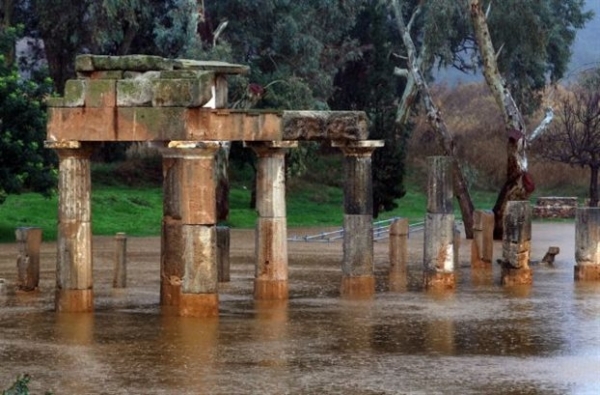 Οι καταρρακτώδεις βροχές είχαν ως αποτέλεσμα να πλημμυρίσει από λασπόνερα ο ναός της Αρτέμιδας στον αρχαιολογικό χώρο της Βραυρώνας, στην ανατολική Αττική.
