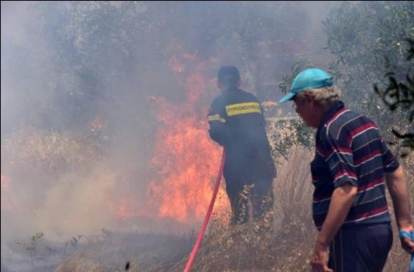 Η φωτιά καίει έκταση με χαμηλή βλάστηση και για την κατάσβεση της έχουν σπεύσει δέκα πυροσβεστικά οχήματα με 30 πυροσβέστες καθώς και δύο ομάδες πεζοπόρων.